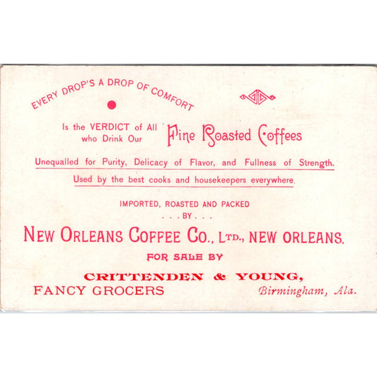New Orleans Coffee Co Crittenden & Young Birmingham AL Antique Trade Card PQ1