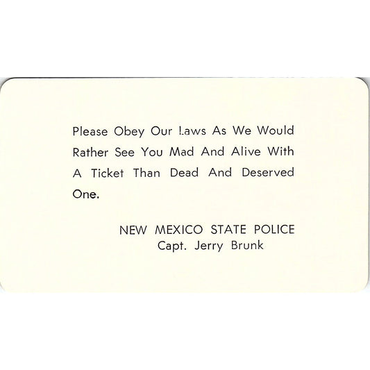 Vintage New Mexico State Police Novelty "Free Ticket" Capt Jerry Brunk AJ6-M12