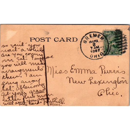 1907 Postcard With Scott #328 Jamestown Exposition Stamp Bremen Ohio PQ1