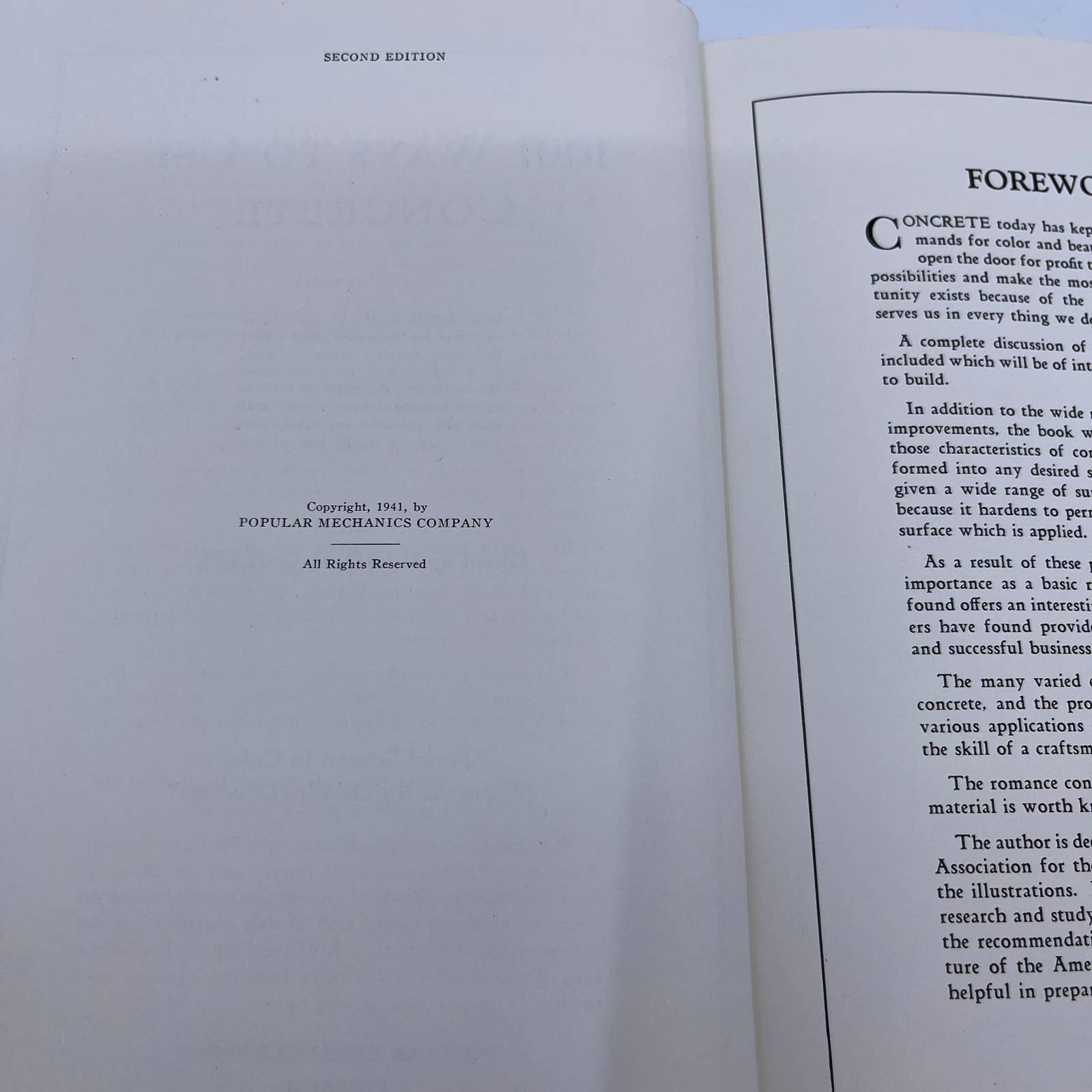 1001 Ways To Use Concrete Popular Mechanics 1941 H/C D/J TH6