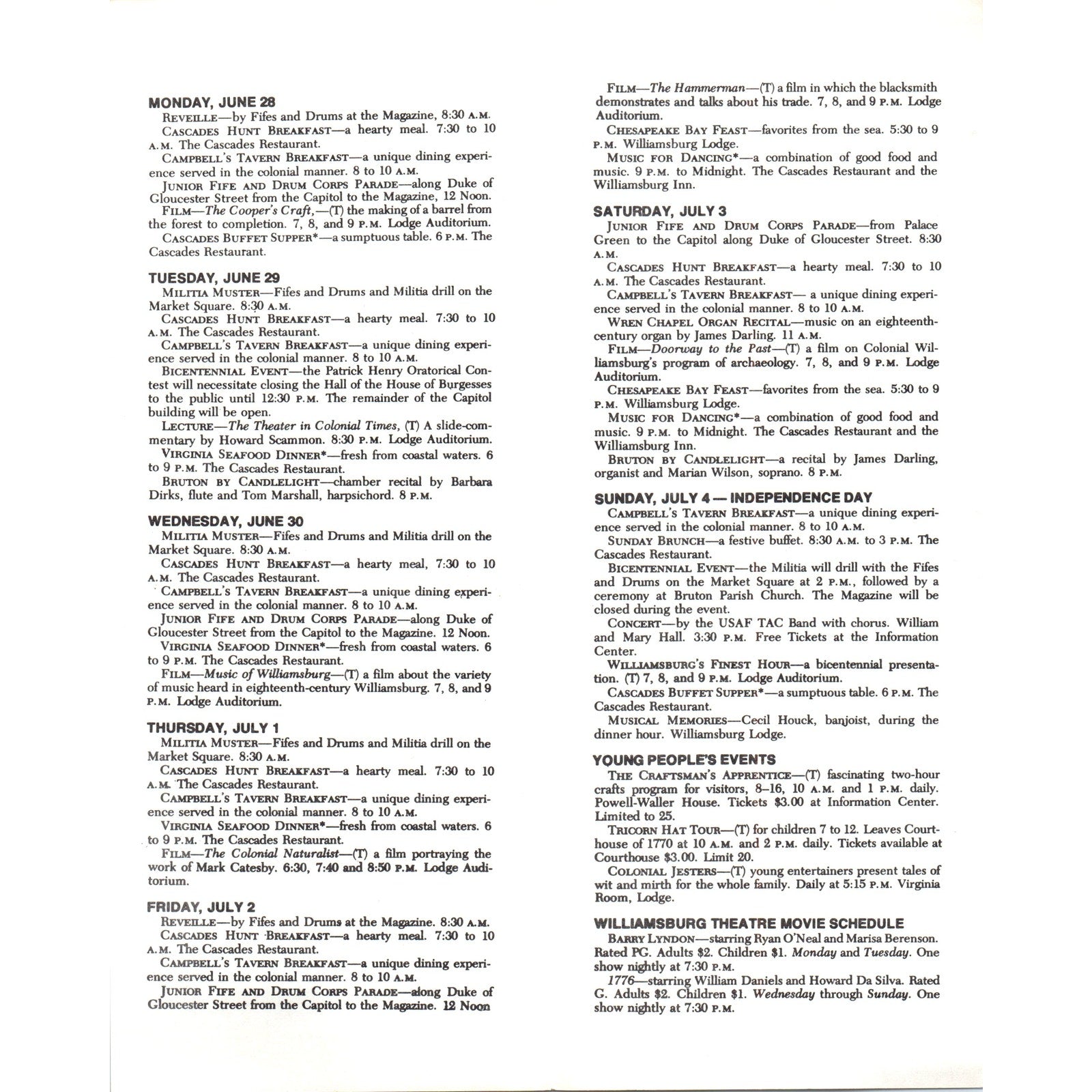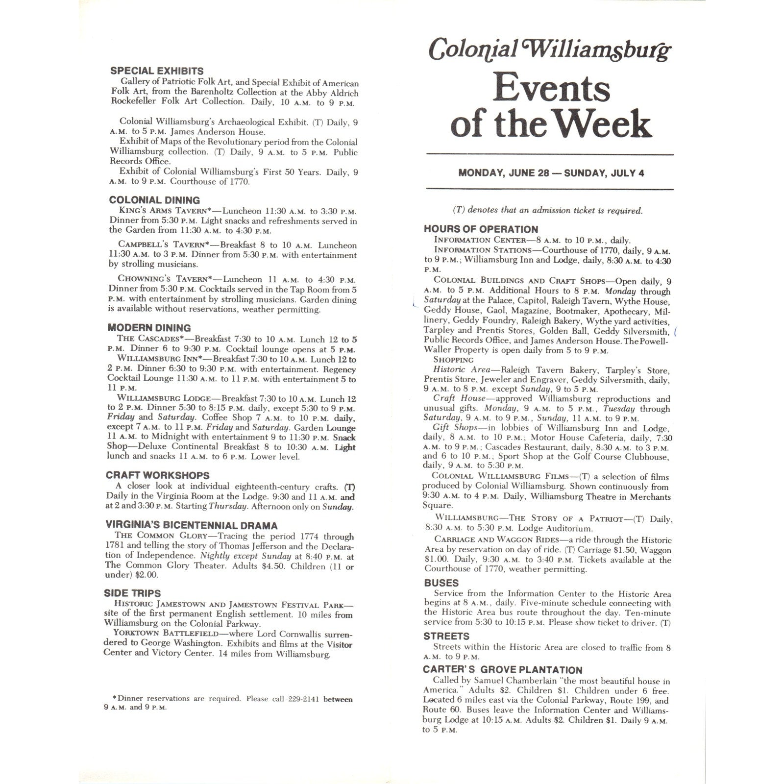 1776 Bicentennial Colonial Williamsburg Events of the Week Pamphlet TF4-BD