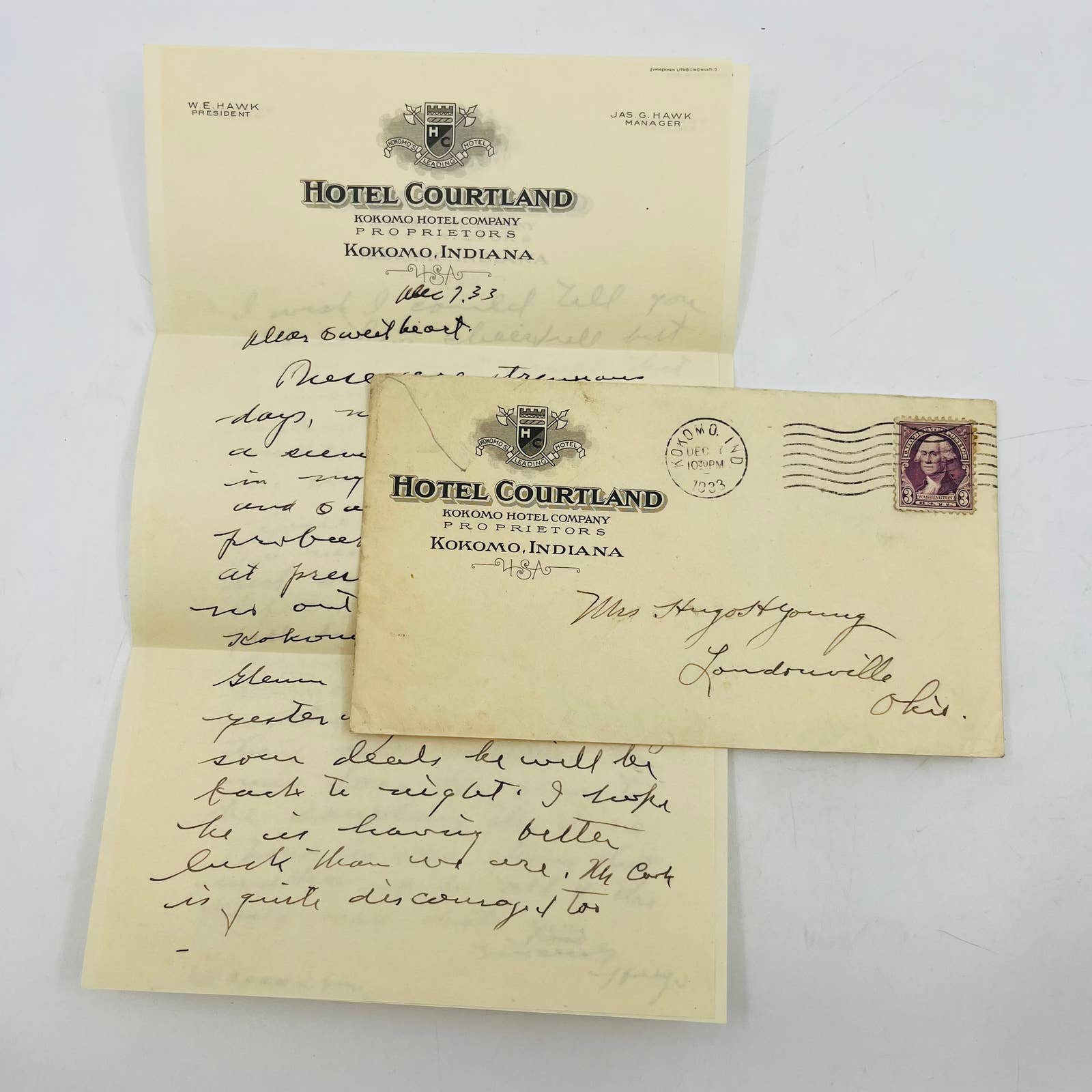 1833 Envelope & Handwritten Letter Hotel Courtland Kokomo Indiana Letterhead EA4