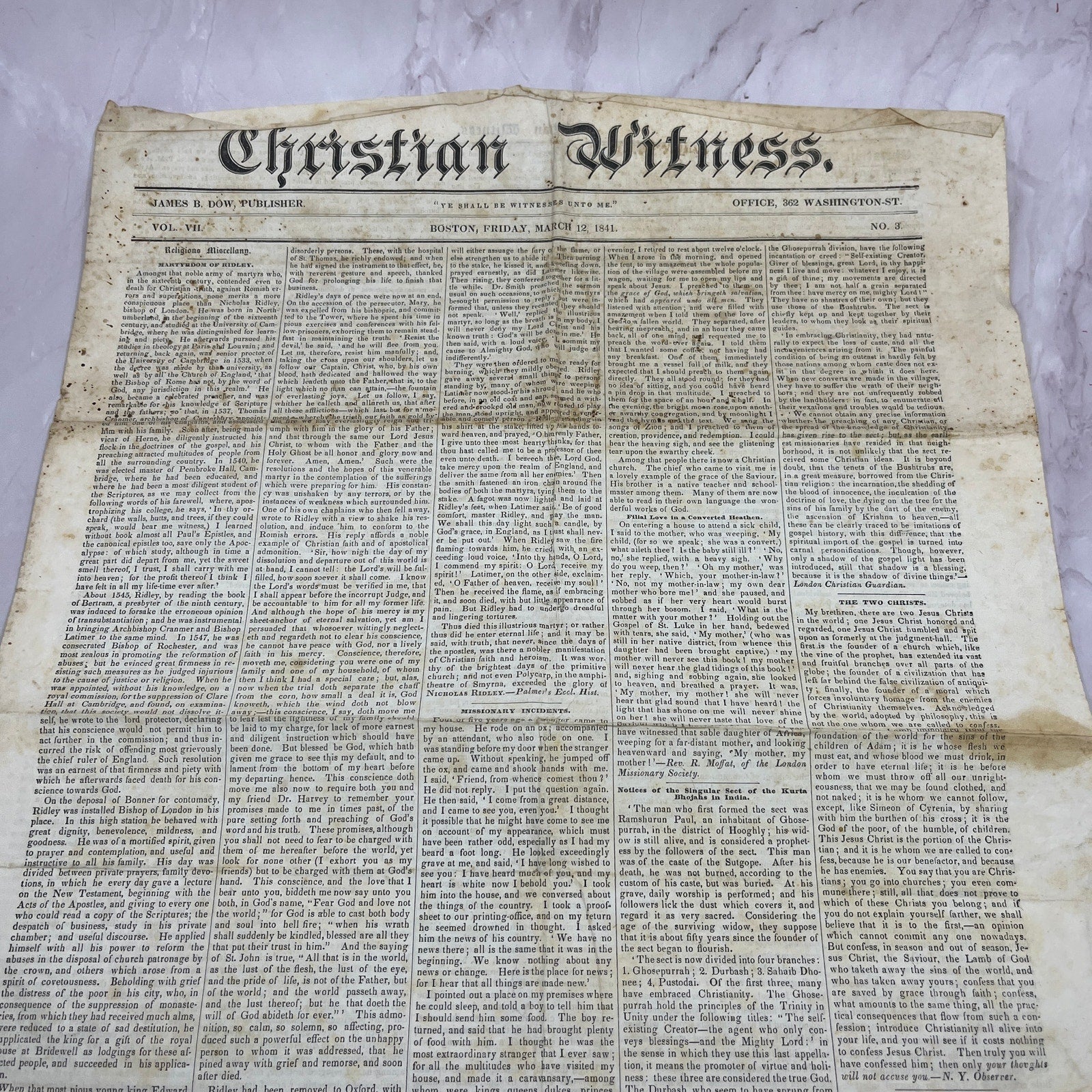 1841 March 12 Original Christian Witness Newspaper Boston MA V14-5