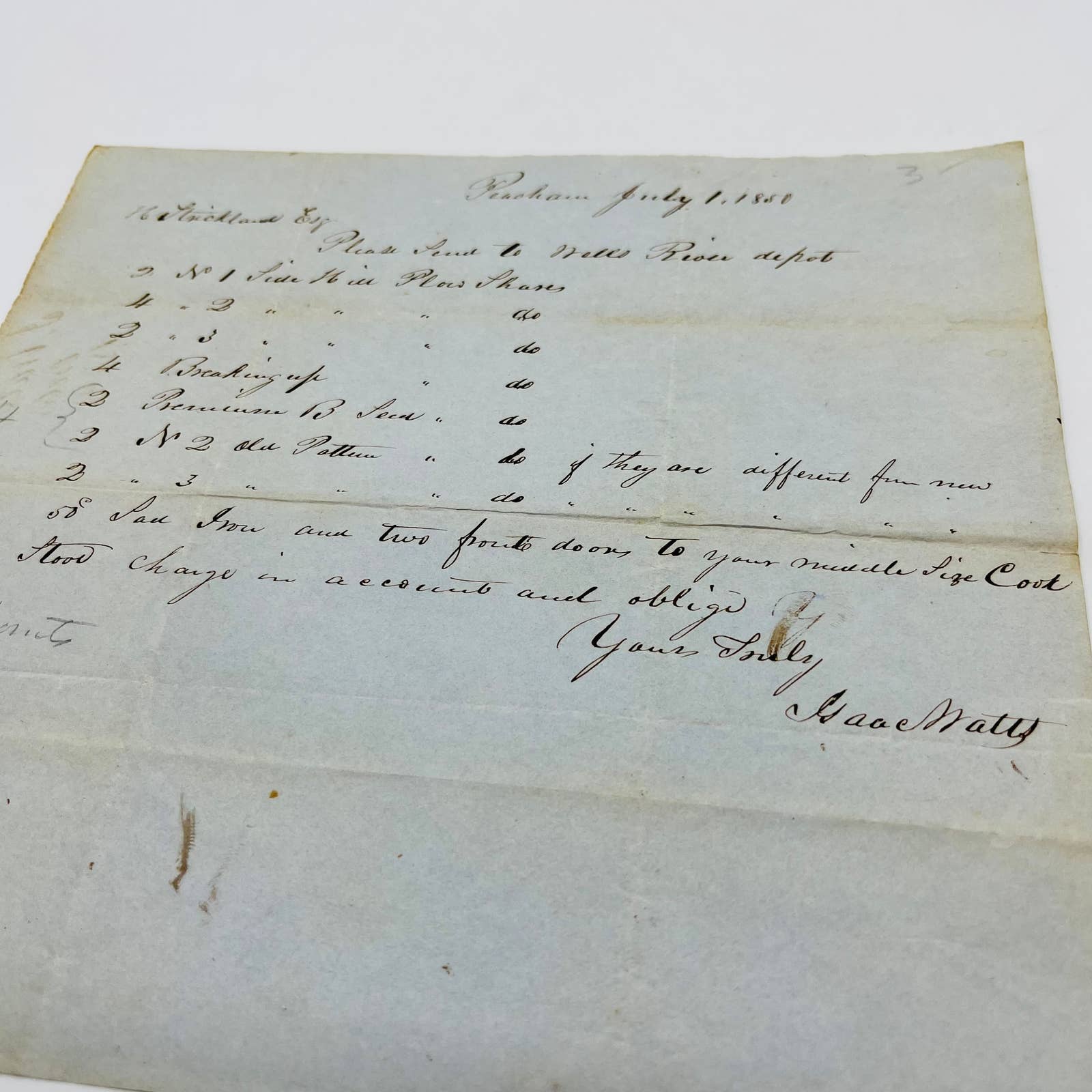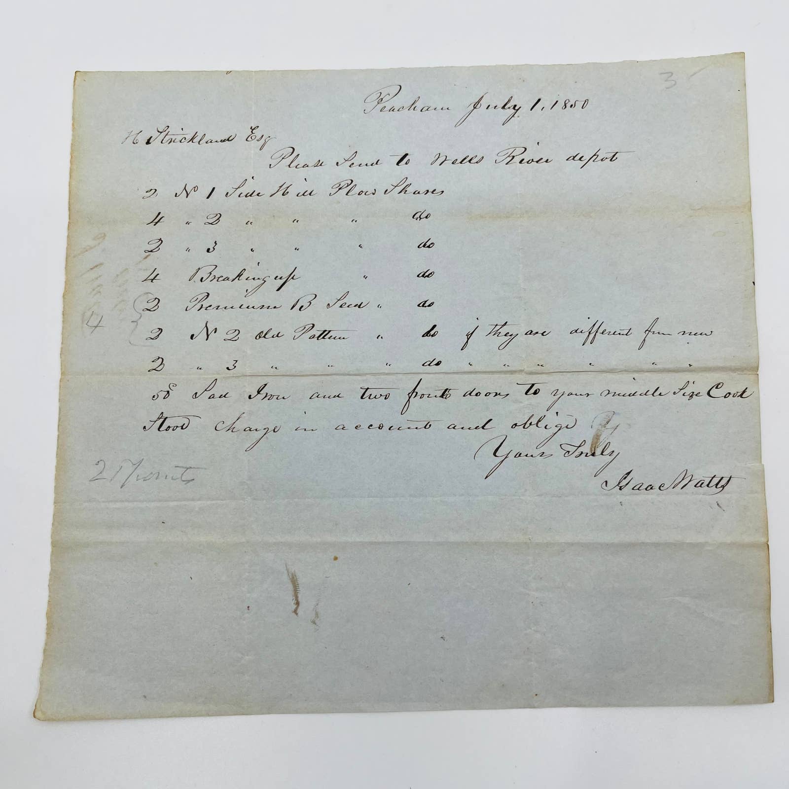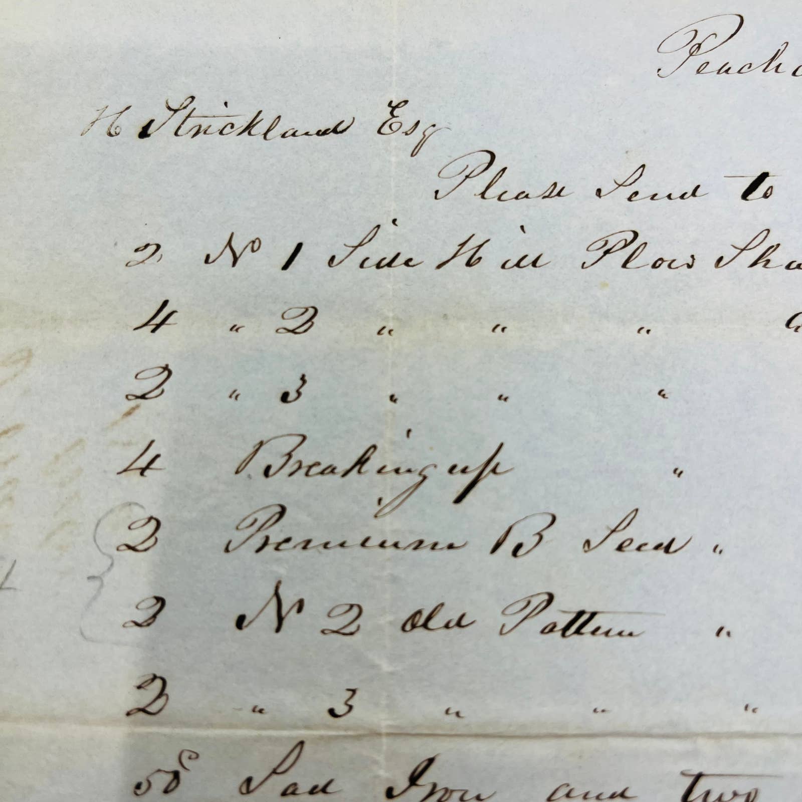 1850 H. Strickland Esq Peacham Vermont Billhead Letterhead Receipt AA4