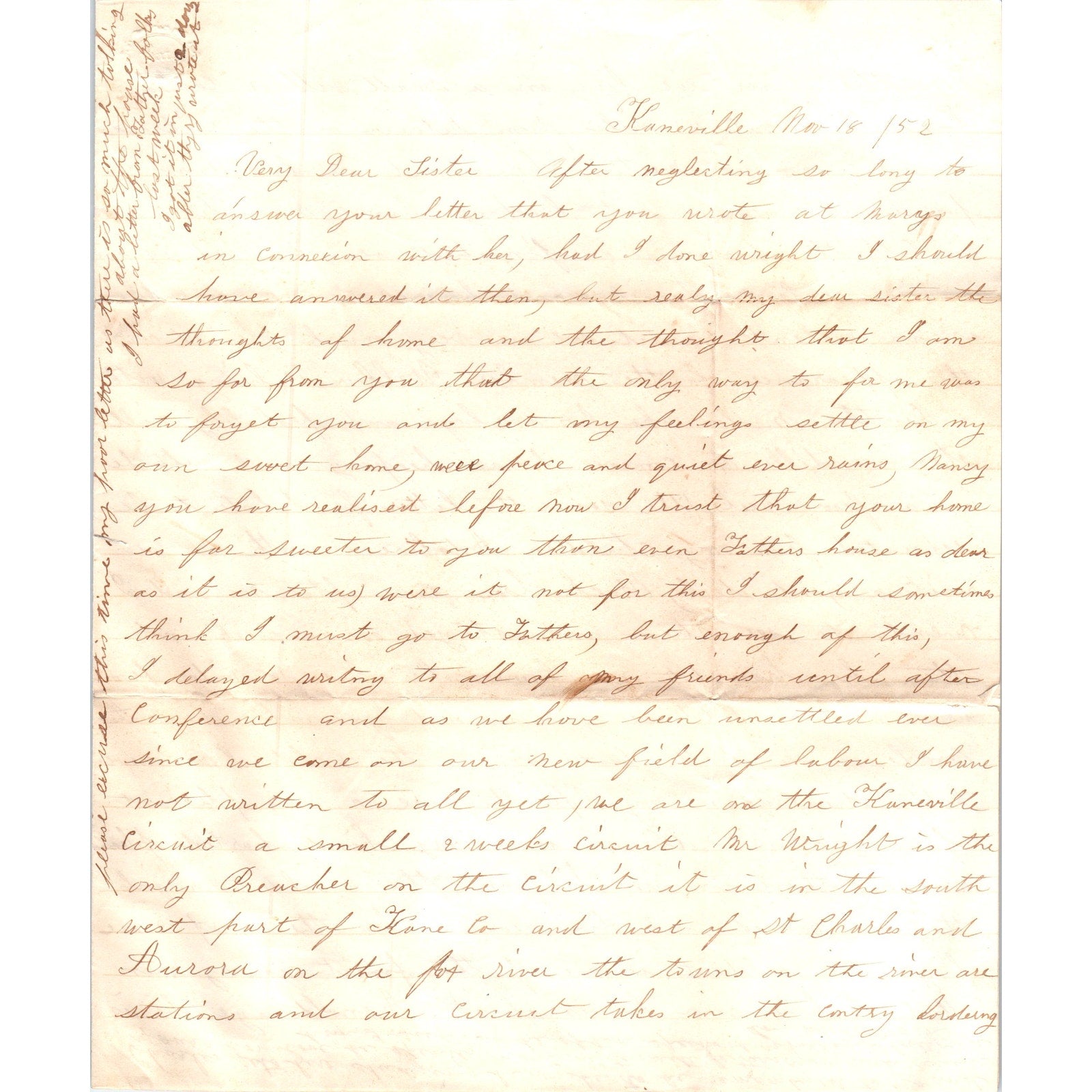 1852 Handwritten Letter Kaneville PA D21