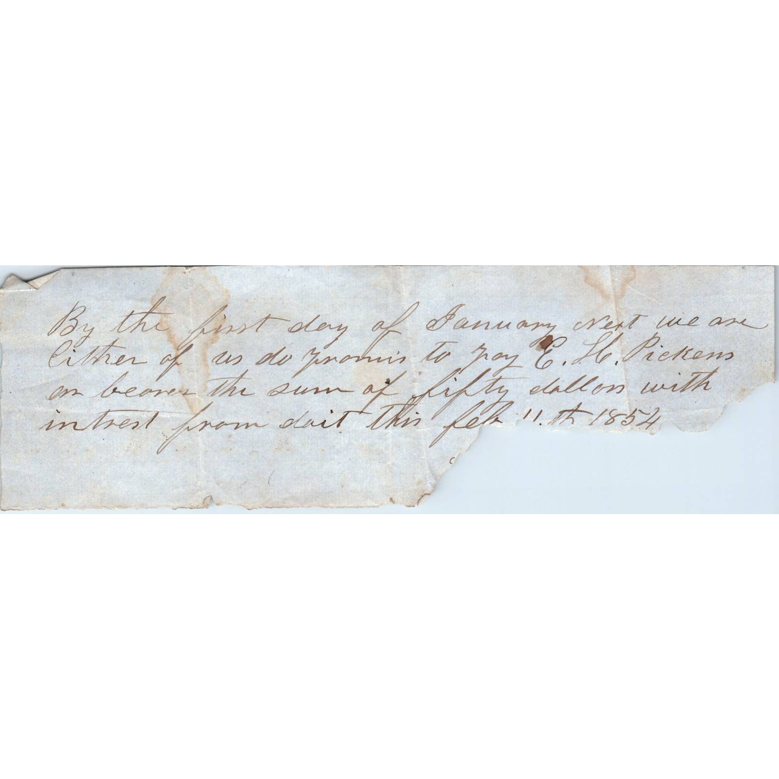 1854 Handwritten Promissory Note Loan Agreement IOU E.H. Pickens Butler Co AL AD6