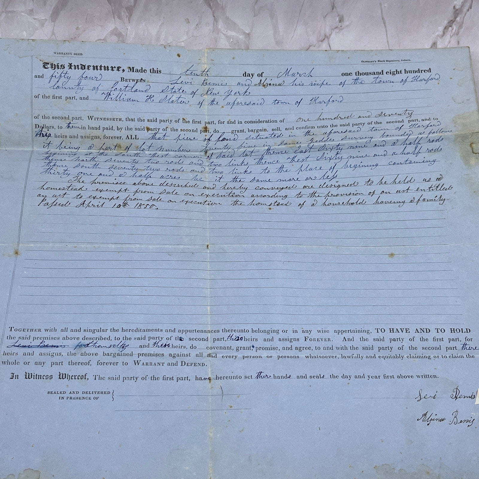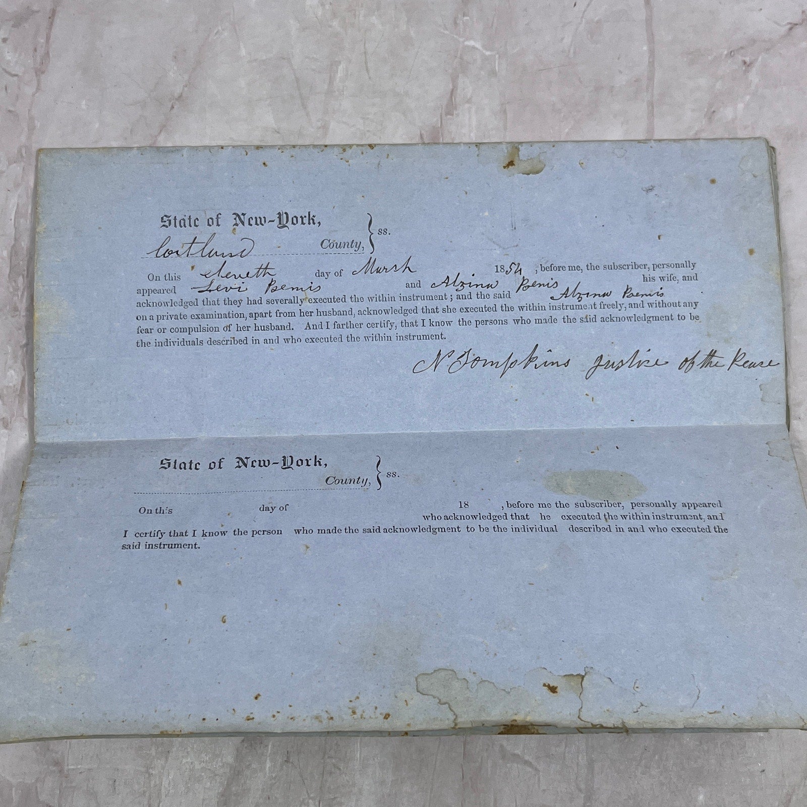 1854 Warranty Deed Levi Bemis Harford Cortland County New York TJ5-E2