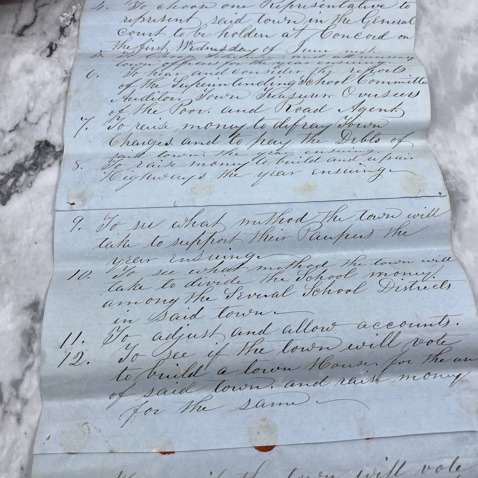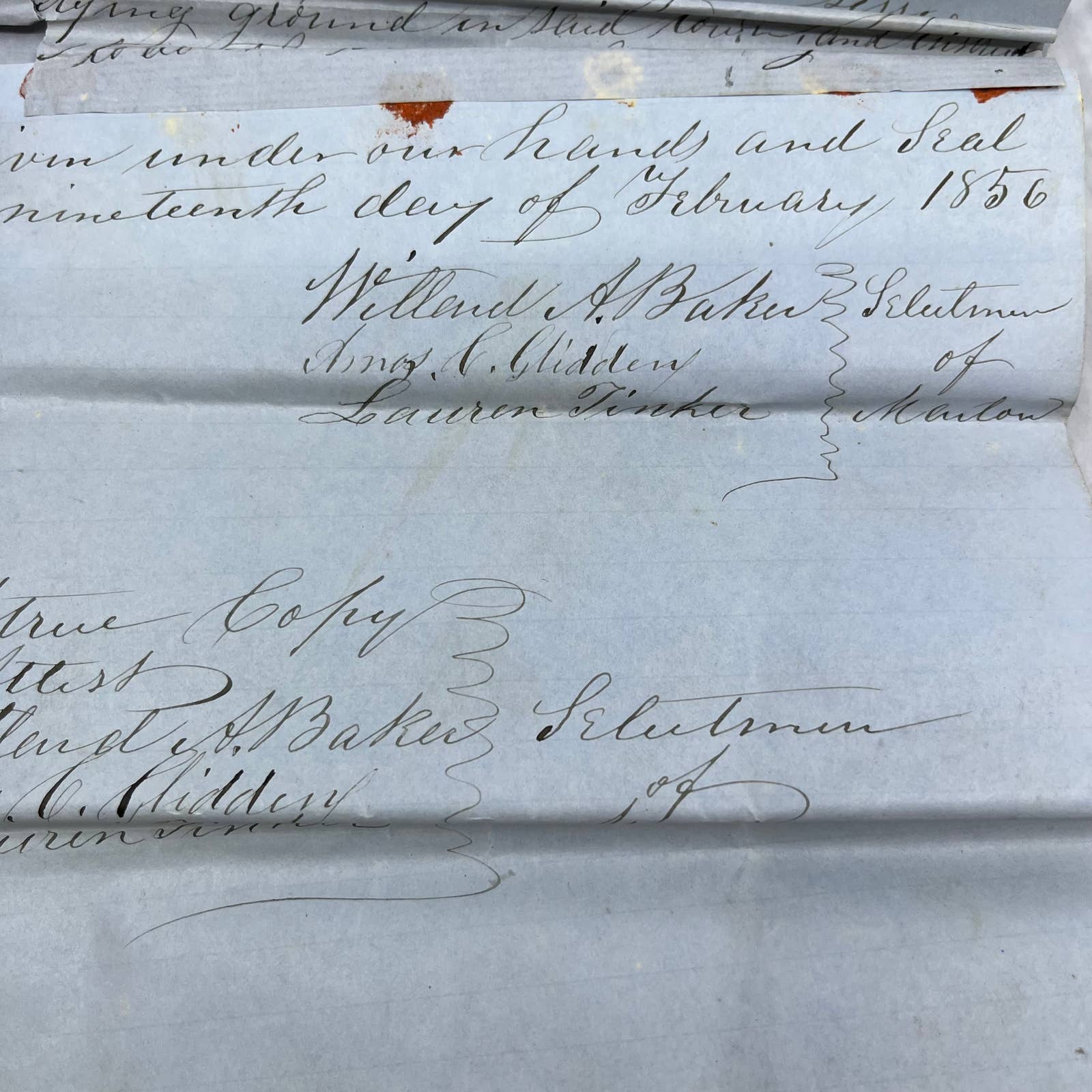 1856 Official Document Marlow New Hampshire Town Meeting Willard A. Baker EA4