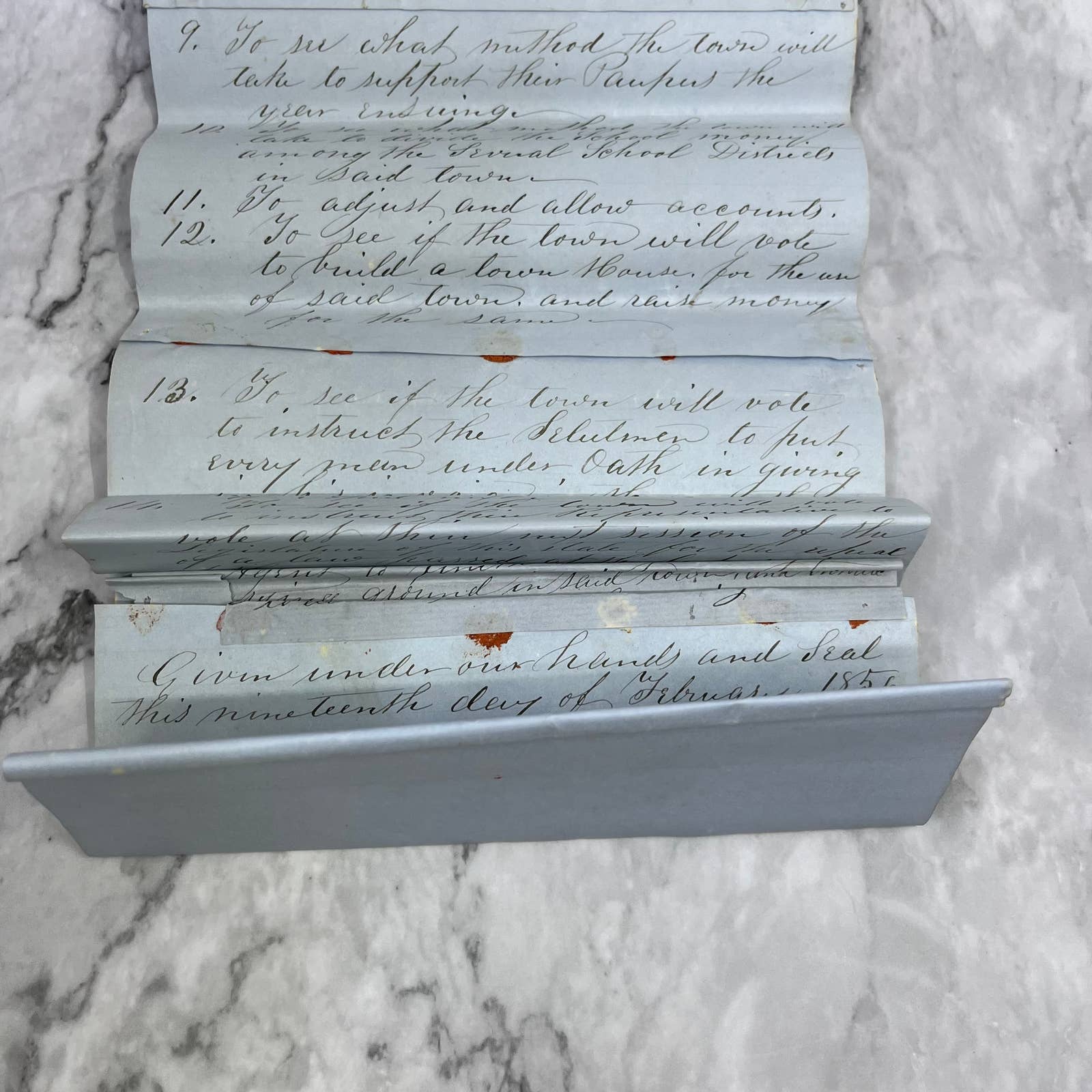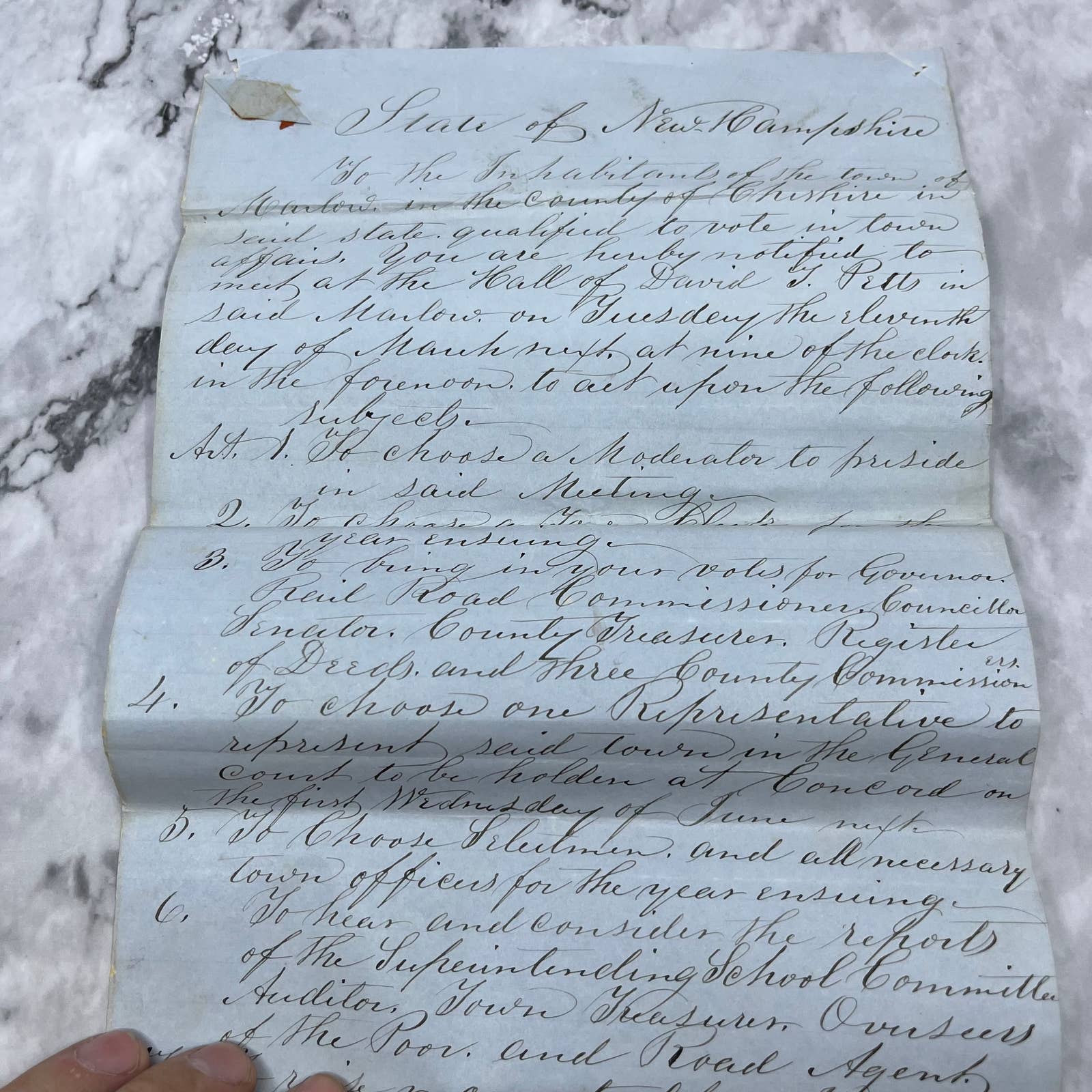1856 Official Document Marlow New Hampshire Town Meeting Invitation Willard A. Baker EA4