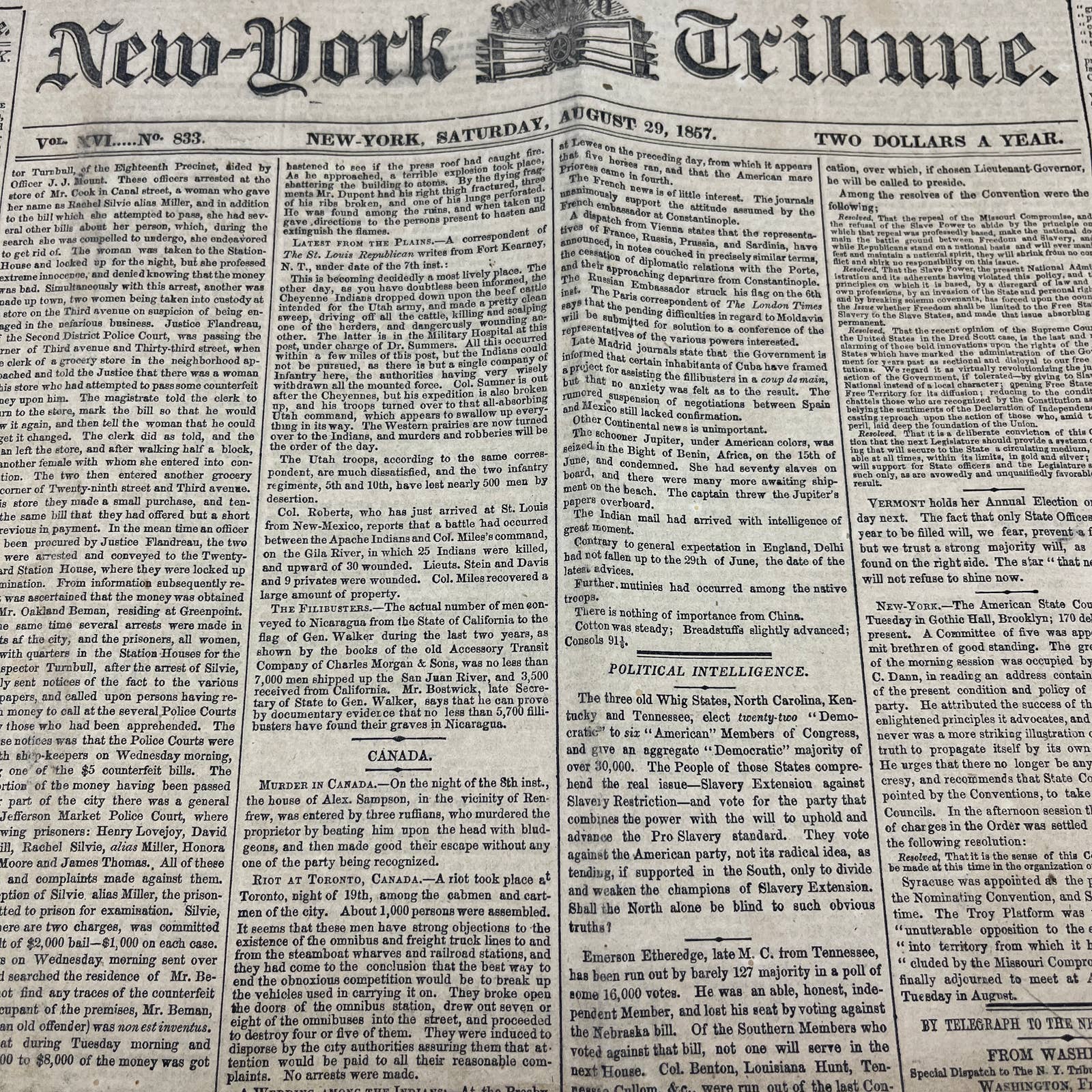 1857 Aug 29 Original New York Tribune - Whig State Slavery Vote FL4