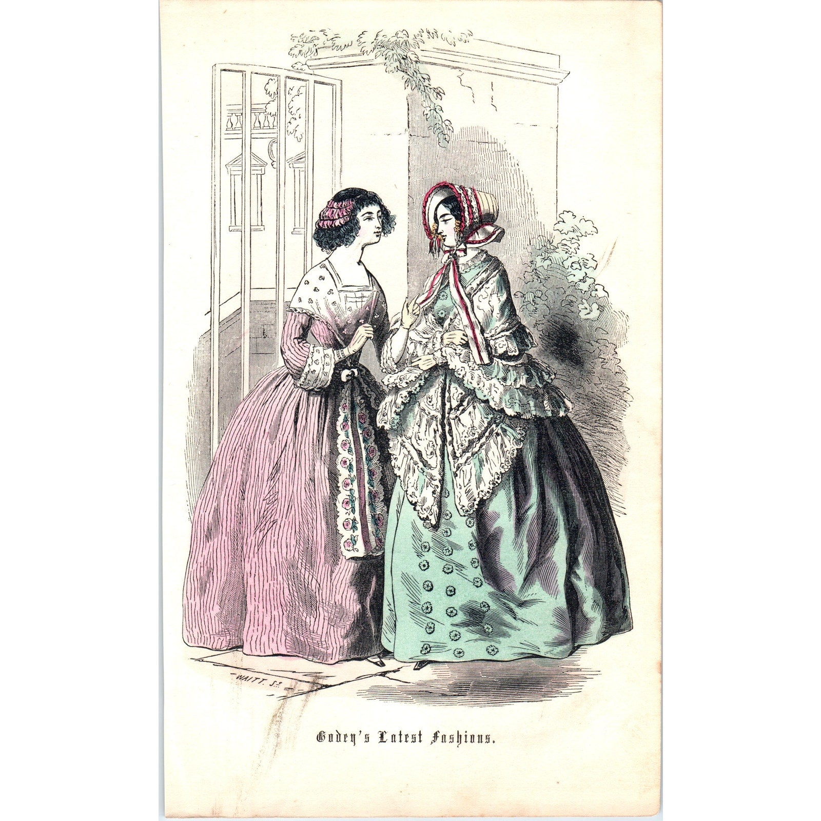 Original piece taken from the 1857 Godey's Lady's Book, may have small blemishes, tears, etc. from use. Please review pictures closely. Measures approx 6x9.5".
