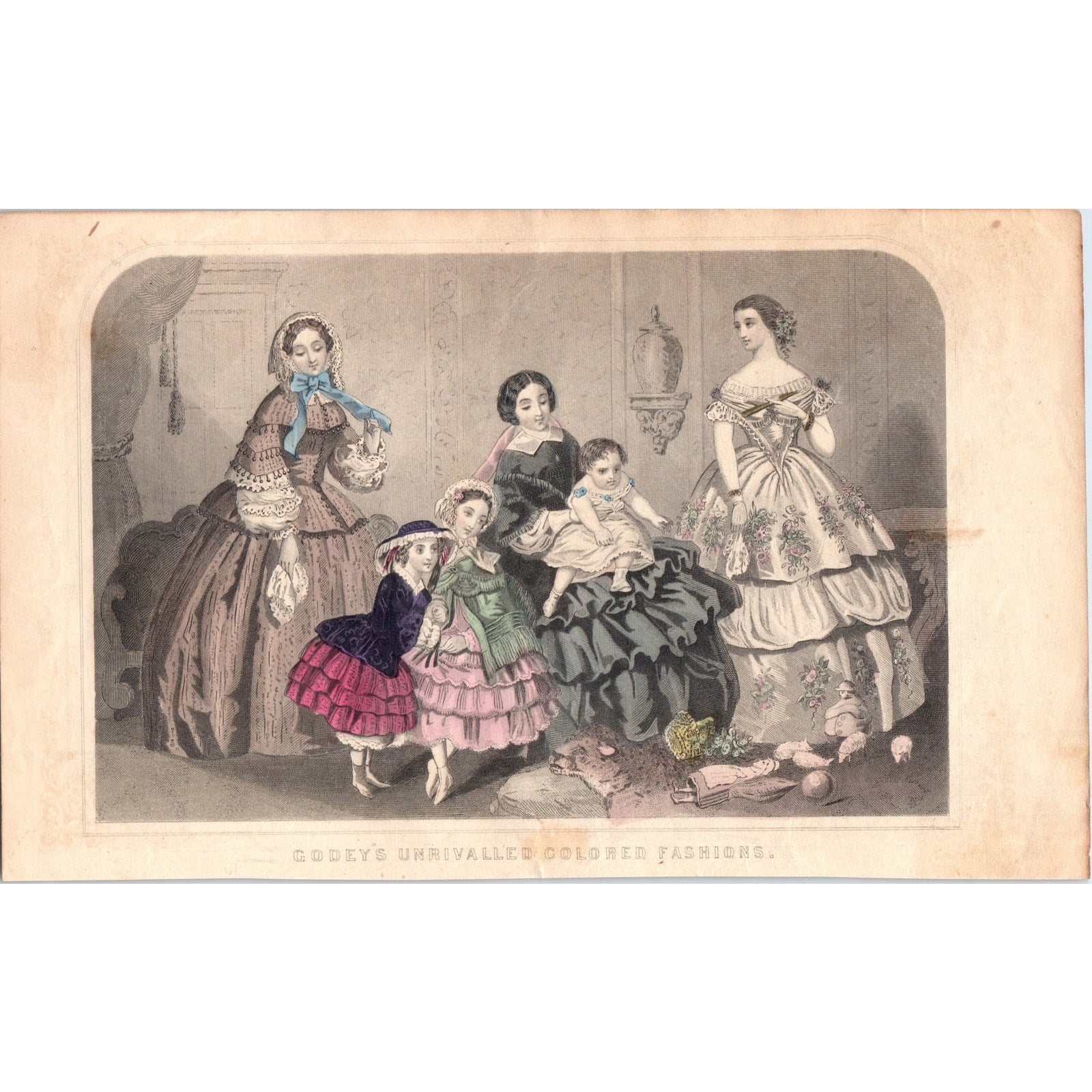 Original piece taken from the 1857 Godey's Lady's Book, may have small blemishes, tears, etc. from use. Please review pictures closely. Measures approx 6x9.5".