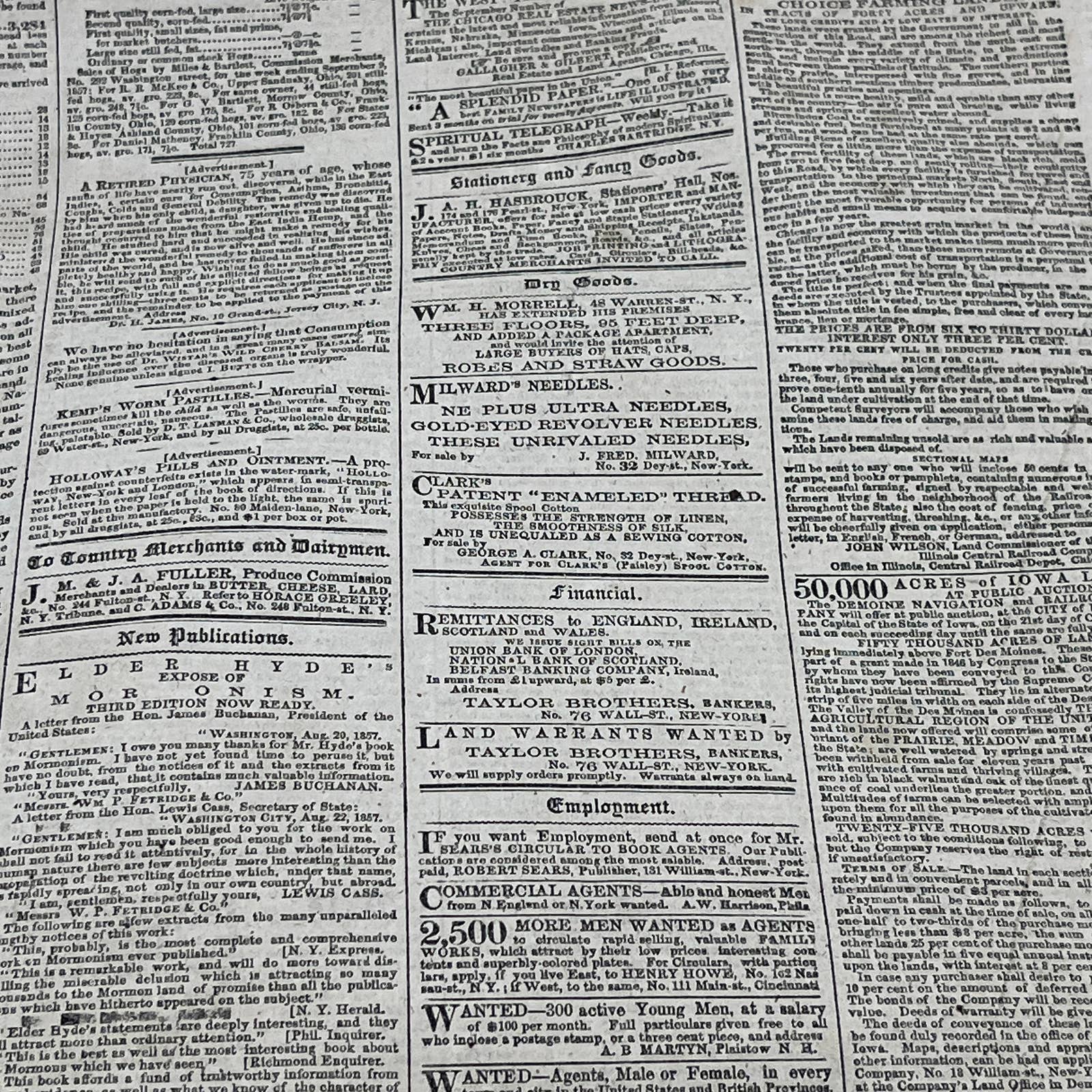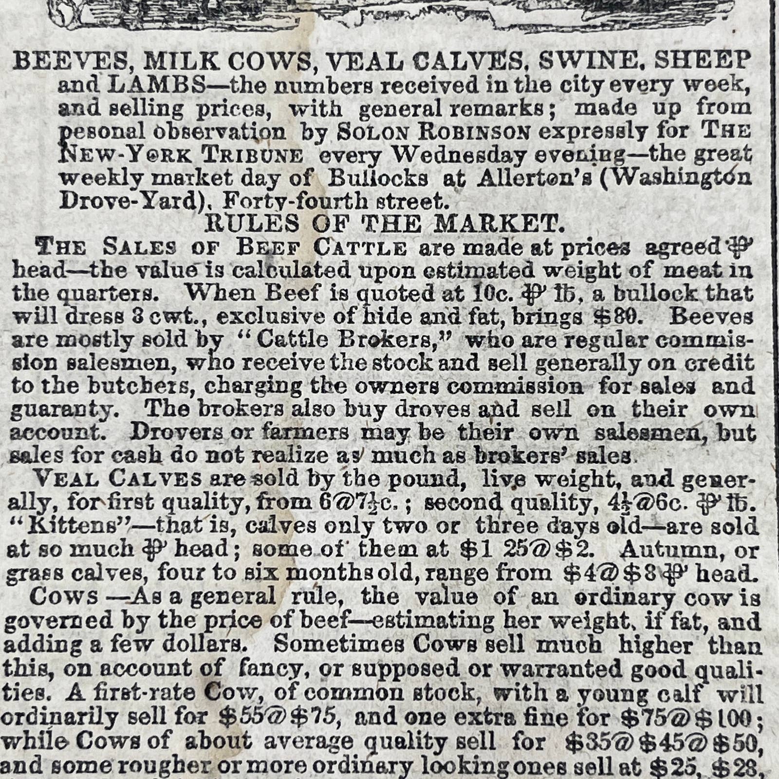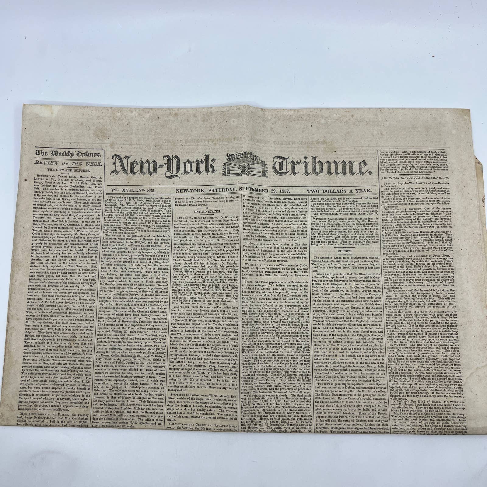 1857 Sep 12 Original New York Tribune - Texas & Native American Relations NY Cattle Market FL4