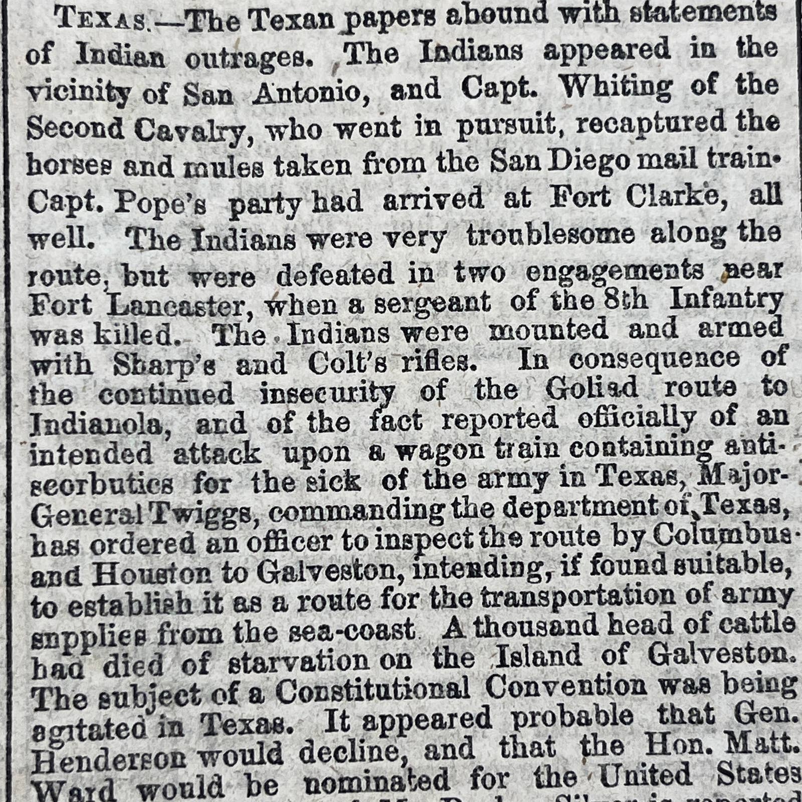 intended attack upon & wagon train containing anti. seorbuties for the sick of the army in Texas, Major-General Twiggs, commanding the department of Lexas...