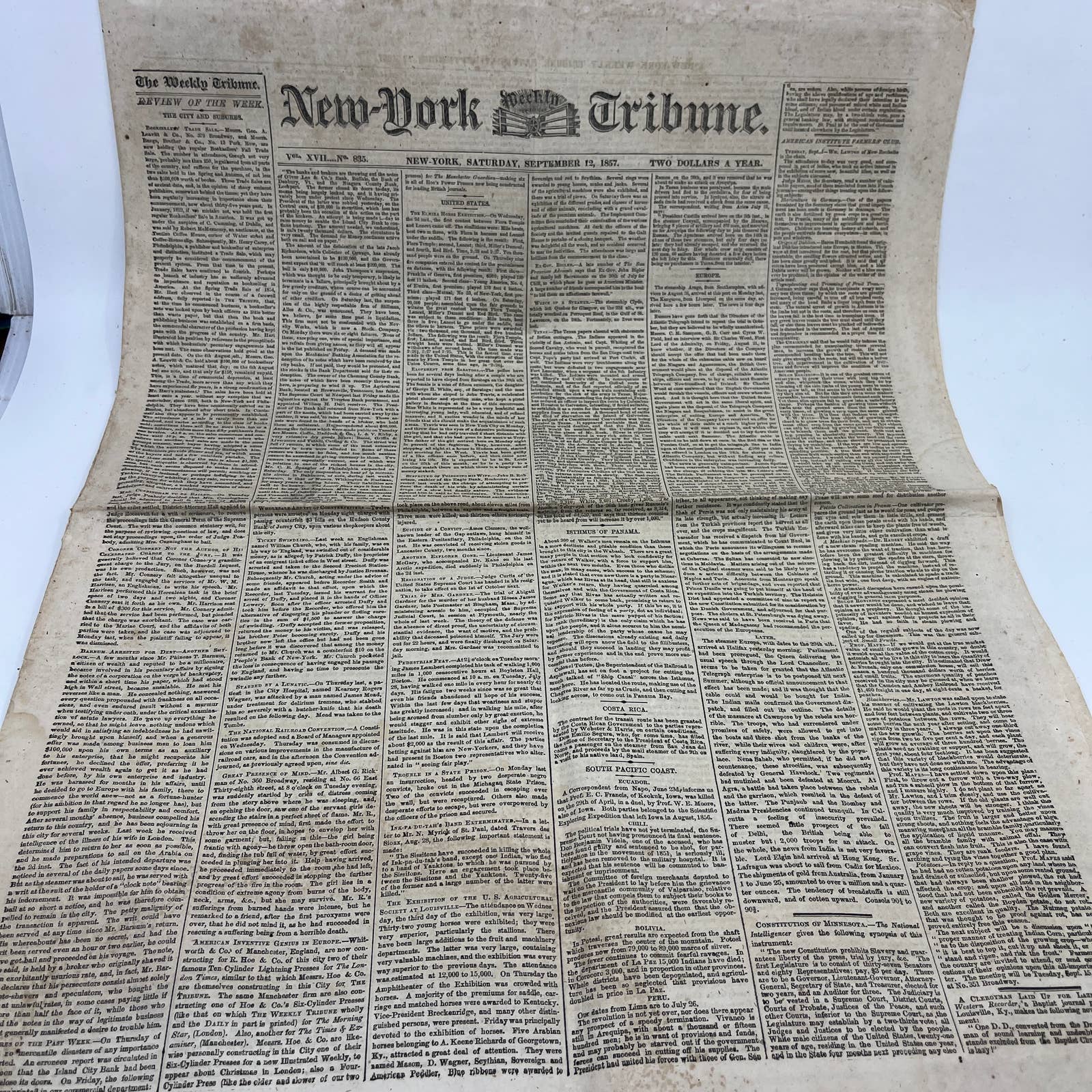1857 Sep 12 Original New York Tribune - Texas & Native American Relations FL4