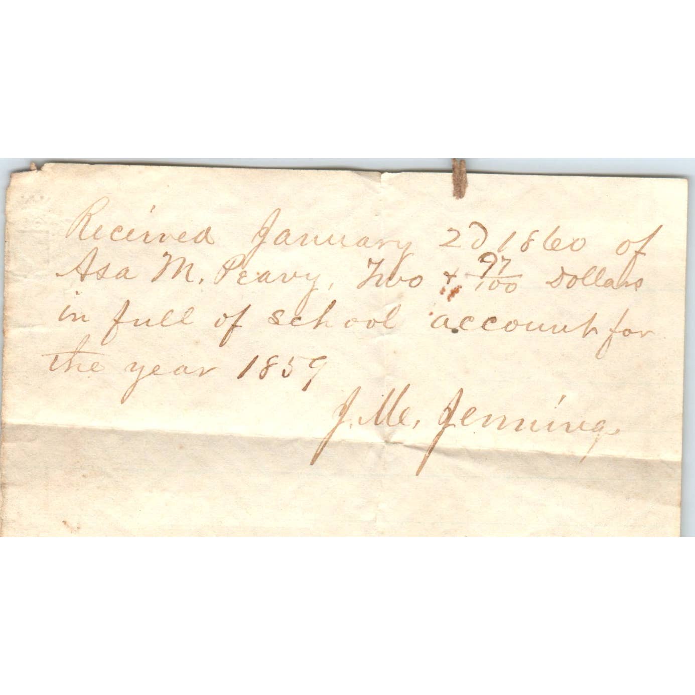 1859 Handwritten Receipt for School Account Payment Asa Peavy to J.M. Jenning Butler Co AL AD6