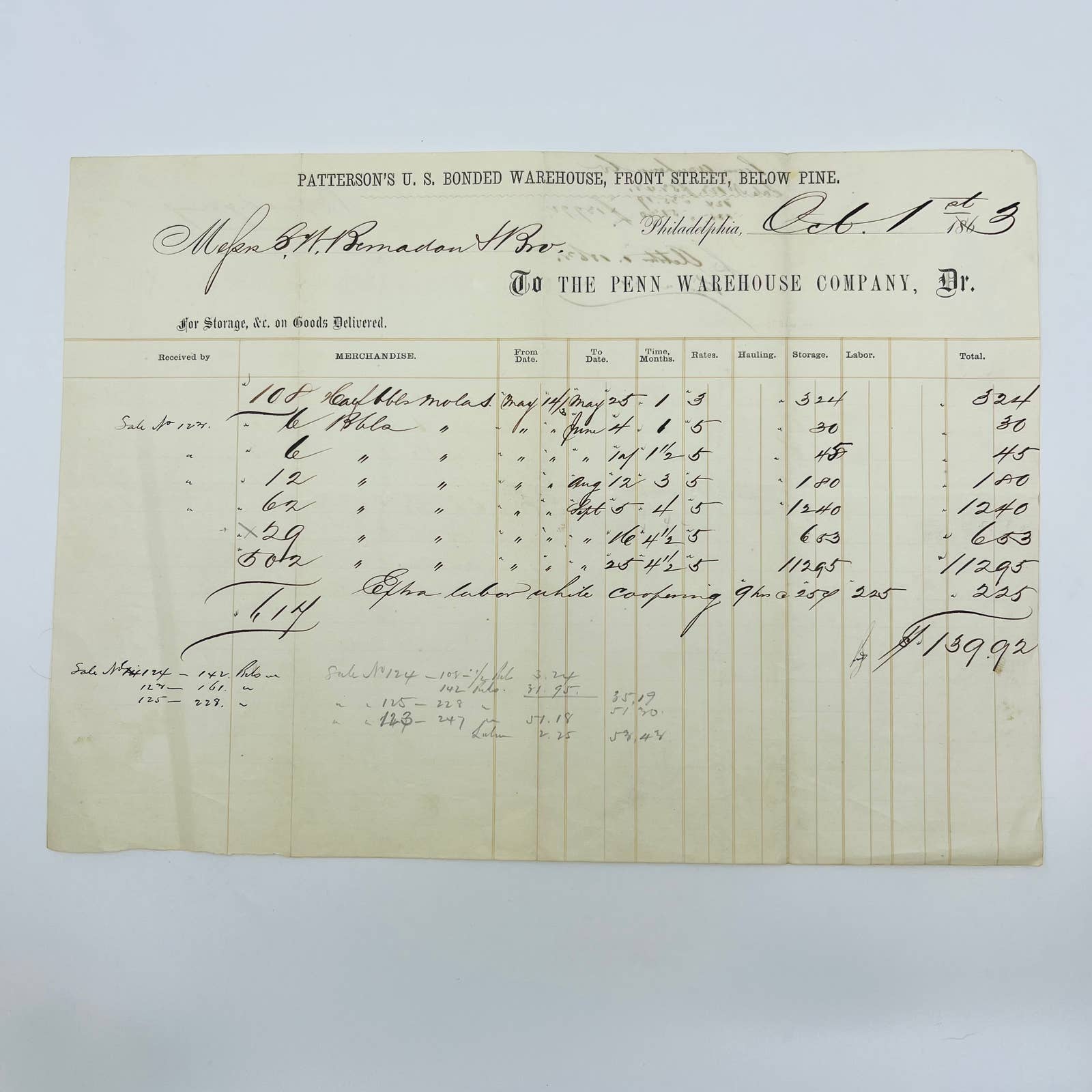 1863 Civil War Penn Warehouse Co Philadelphia PA Billhead Letterhead Receipt AA4