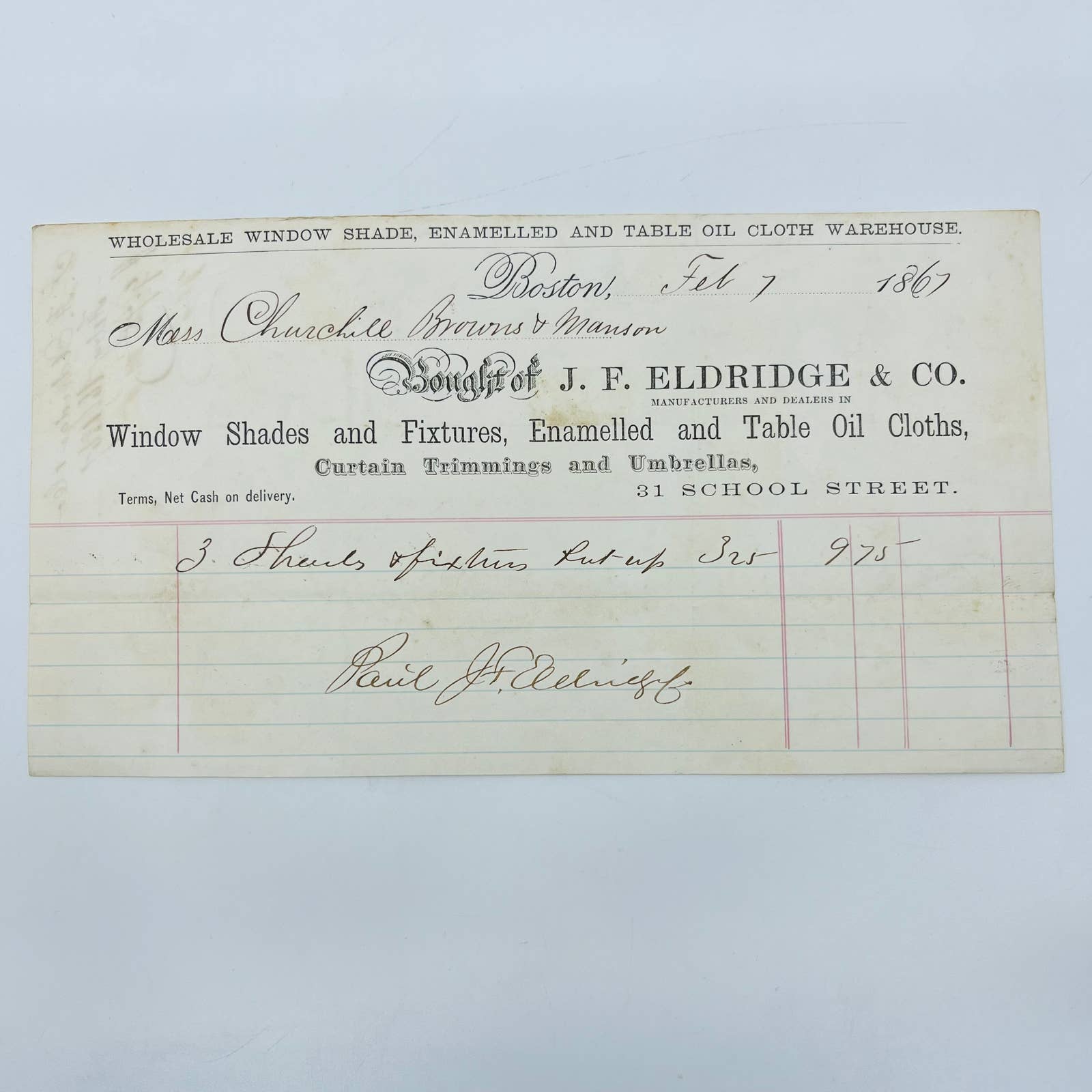 1867 JF Eldridge Churchill Browns & Manson Boston Mass. Letterhead Billhead AA5