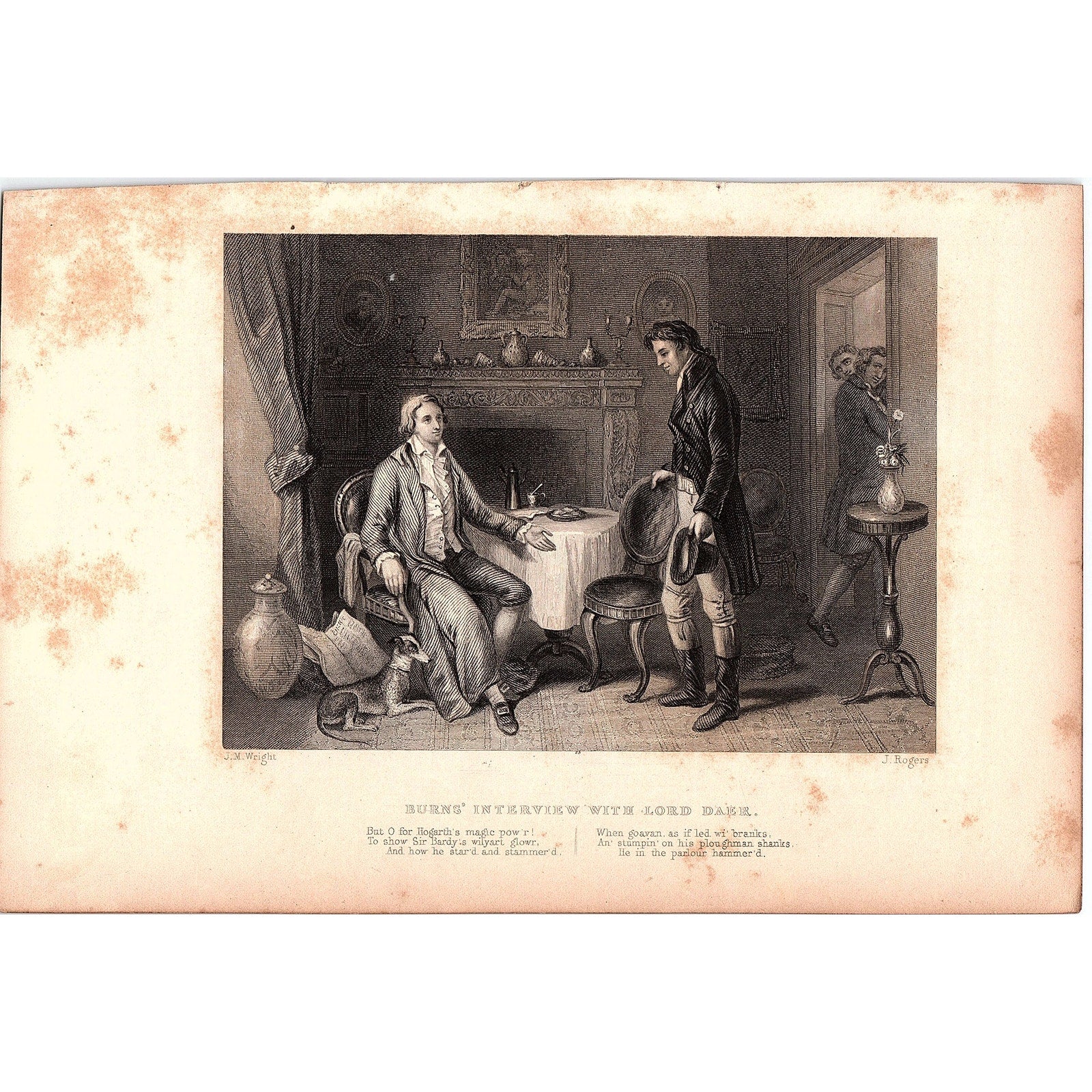 1870s Burns' Interview With Lord Daer Engraving Vintage Art Print 6x9" V17
