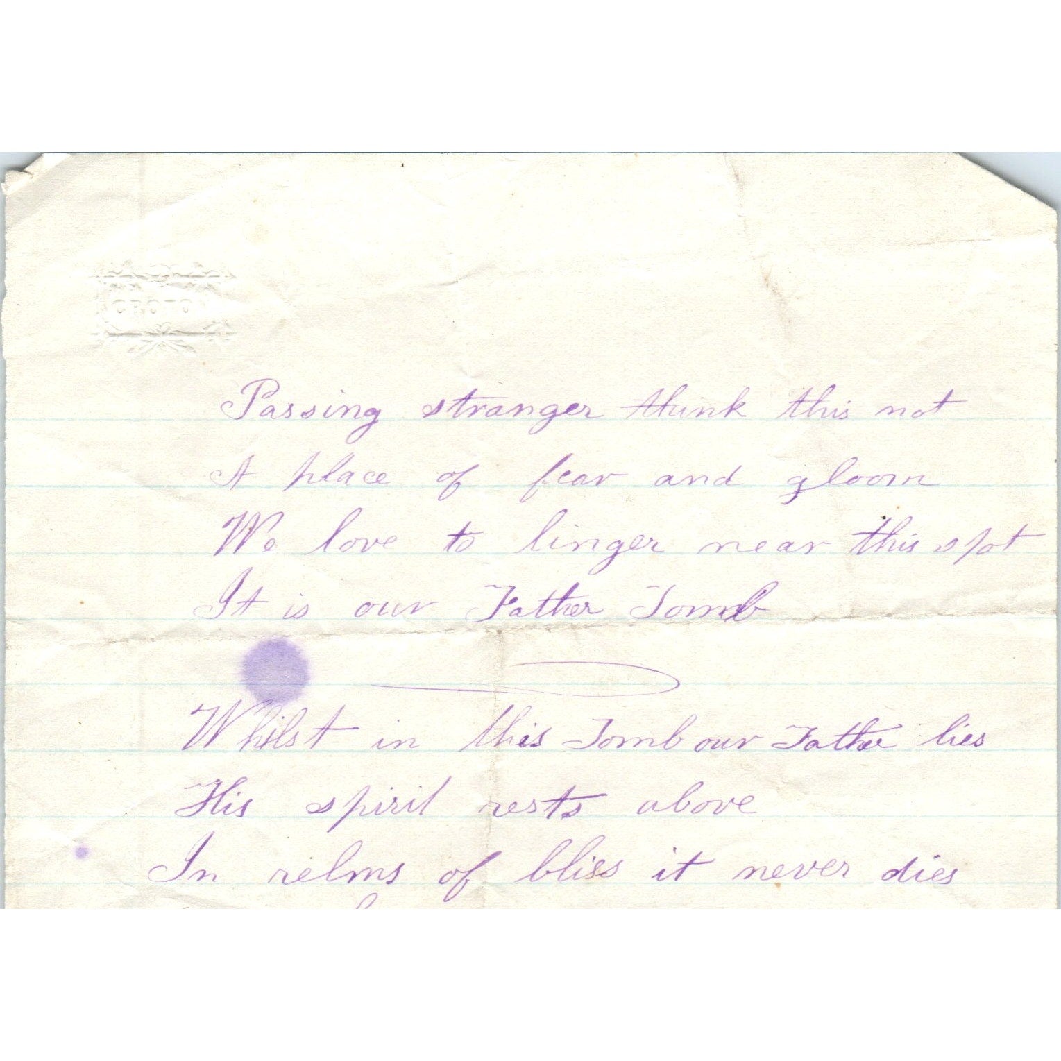 1870s Handwritten Poem - Passing Stranger Think This Not D21