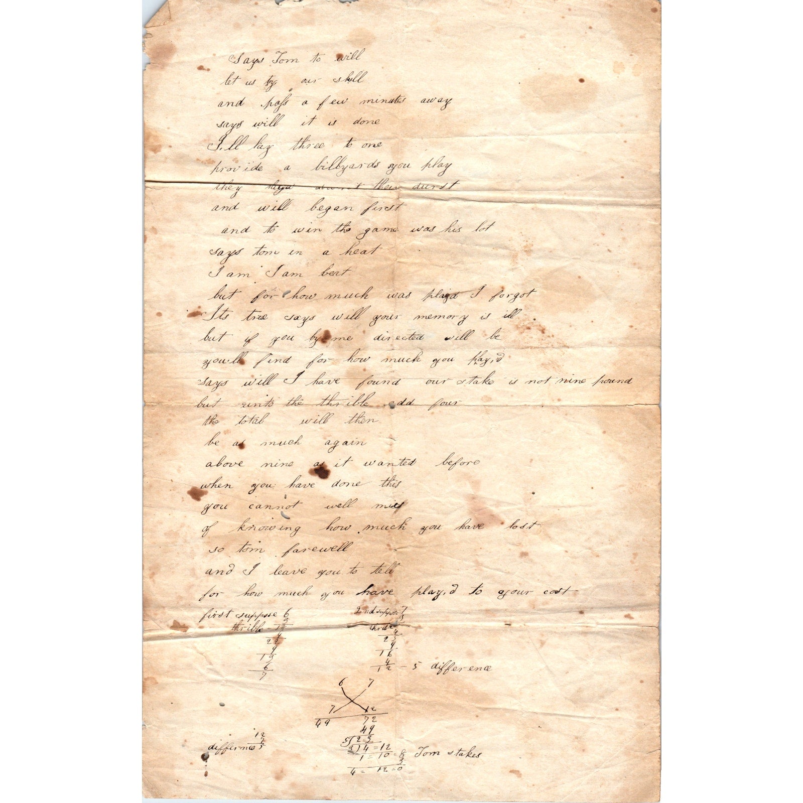 1870s Handwritten Poetry Poem "Says Tom to Will" D23