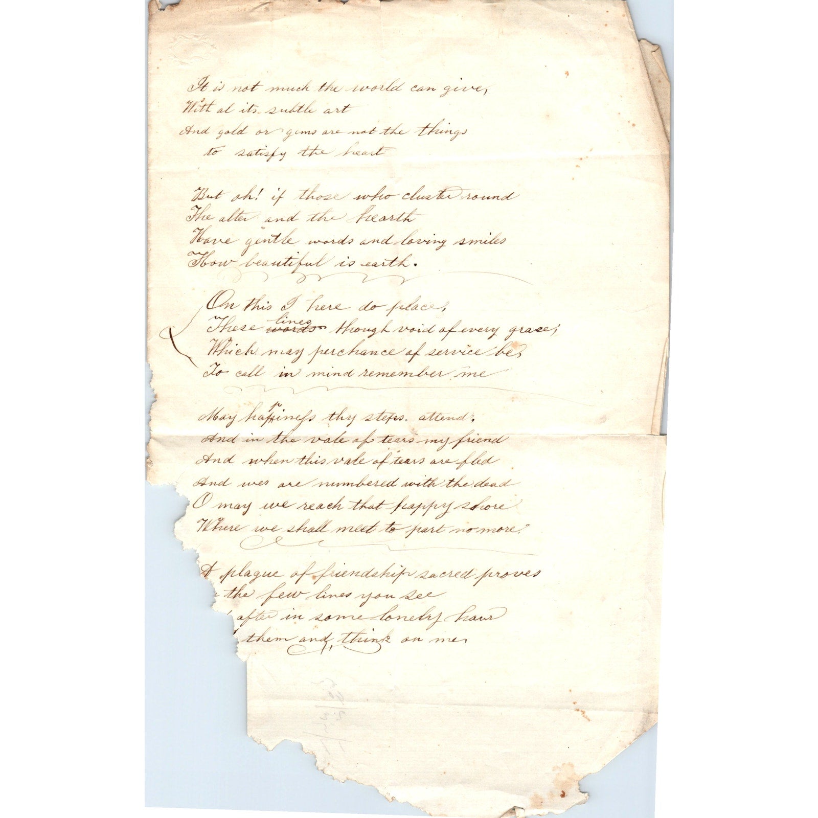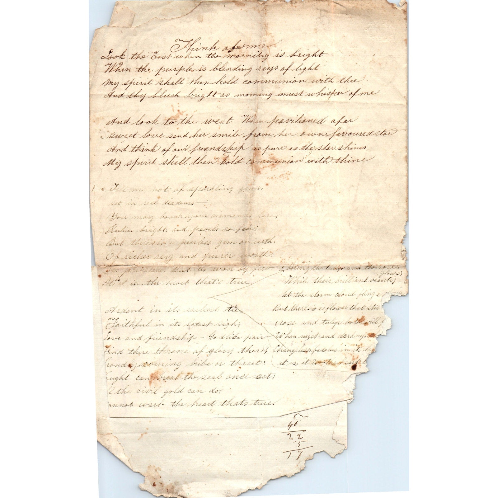 1870s Handwritten Poetry Poems "Think After Me" D23