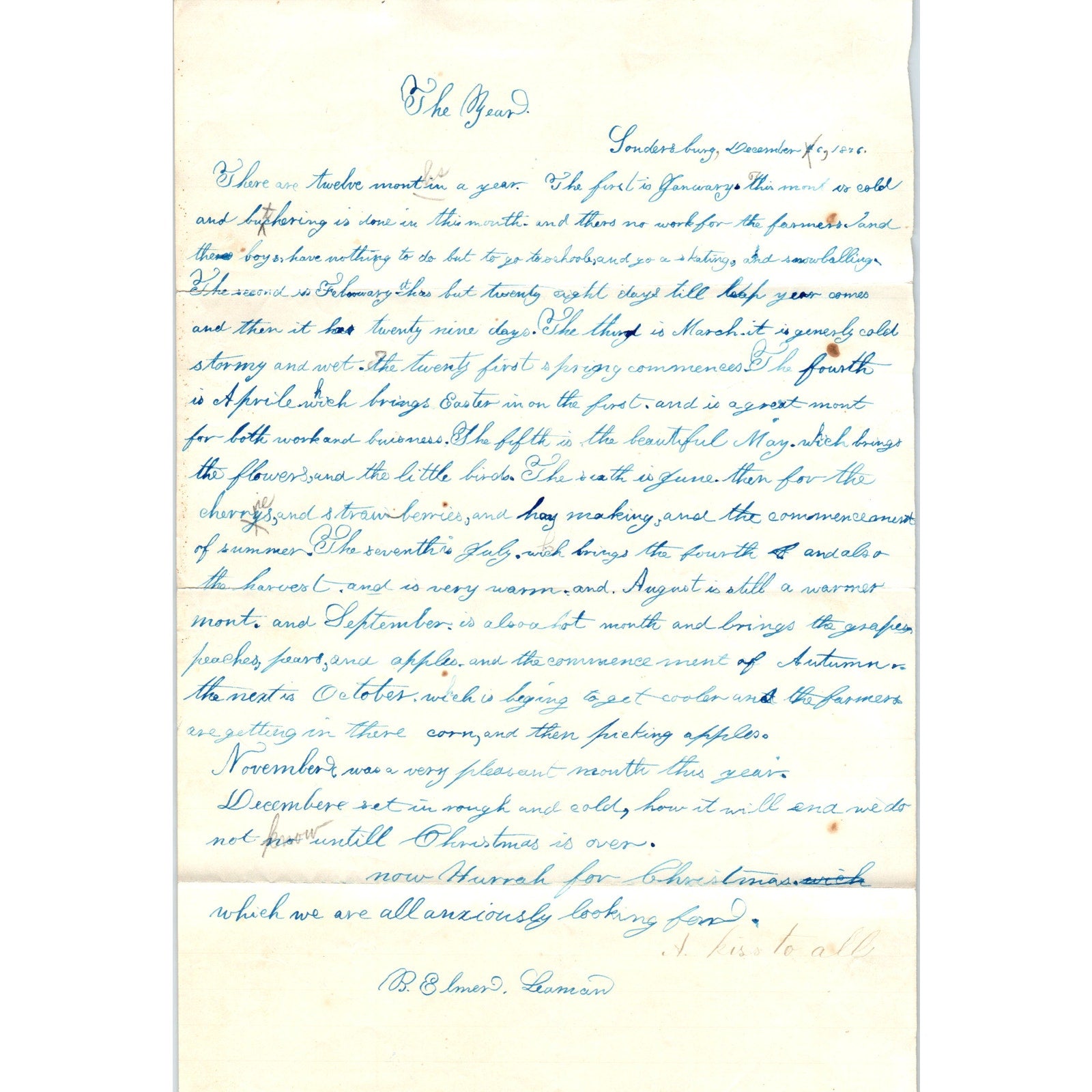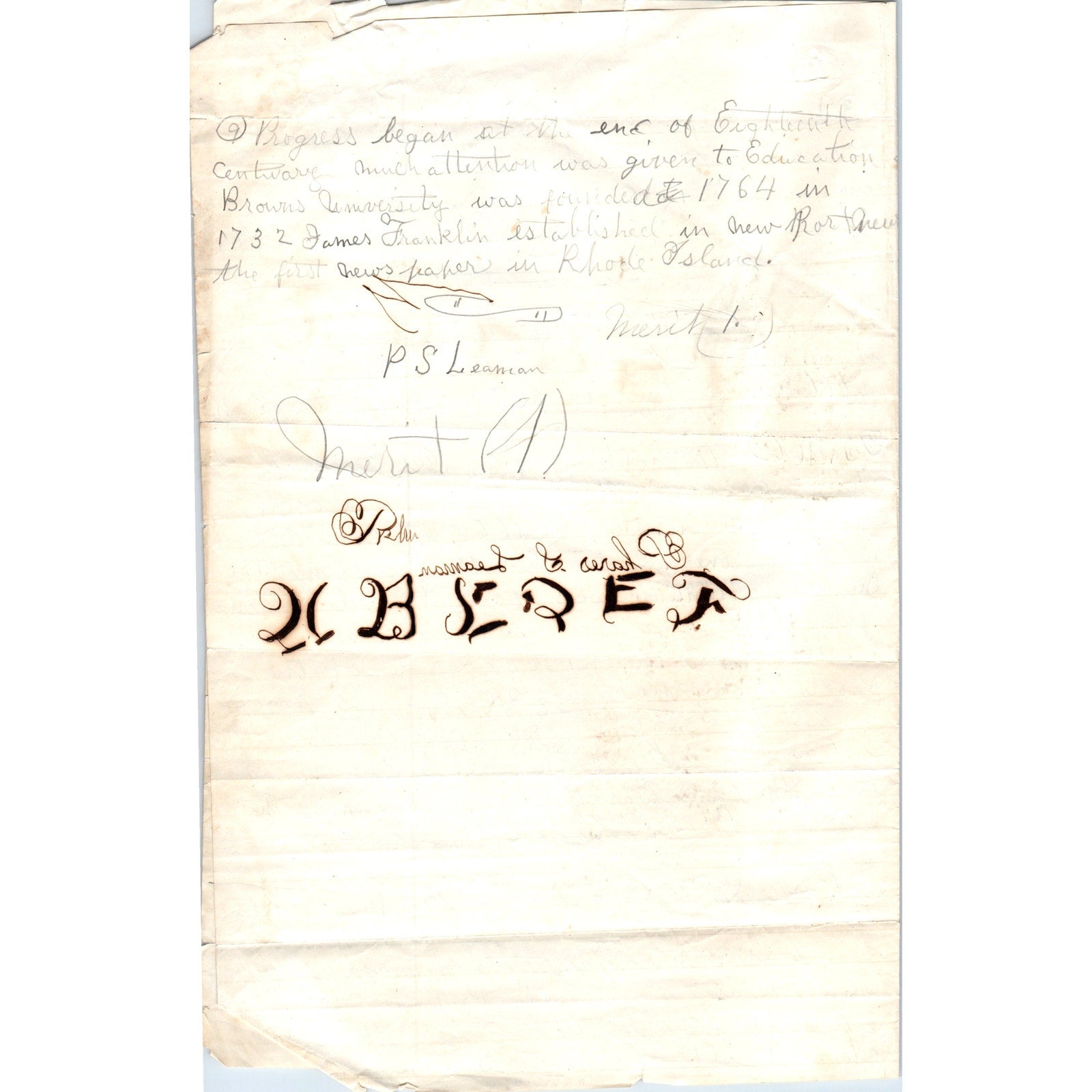 1870s Handwritten Schoolwork Lot P.S. Leaman, B. Elmer Leaman Soudersburg PA D23