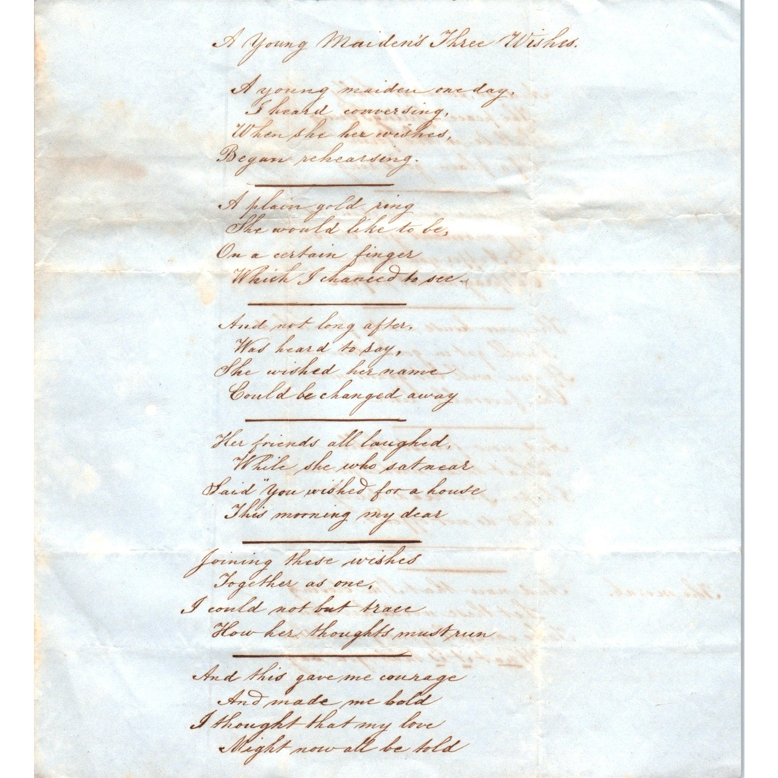 1870s Original Handwritten Poem - A Young Maiden's Three Wishes D21