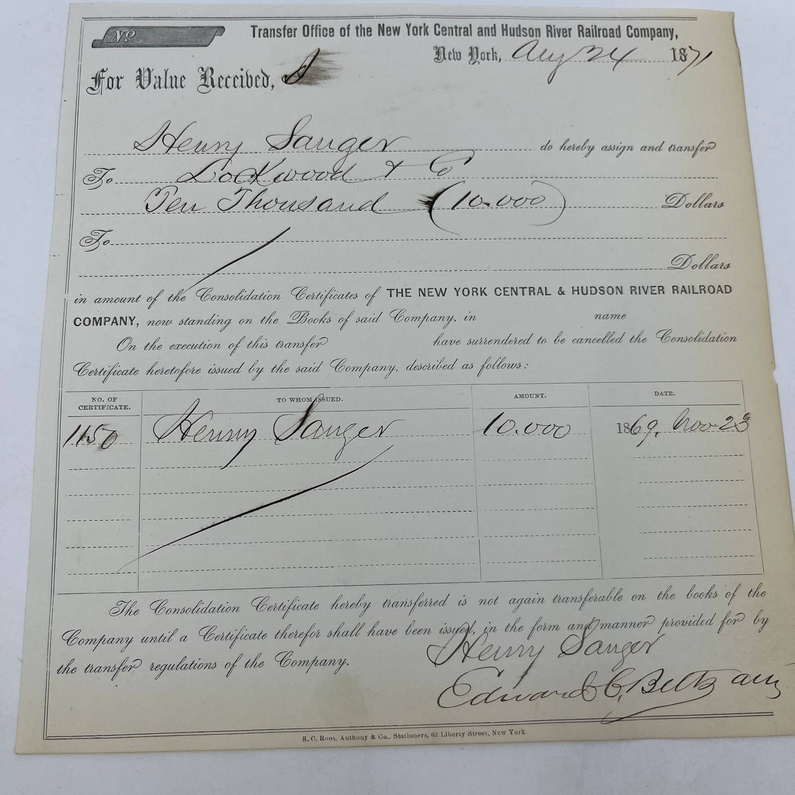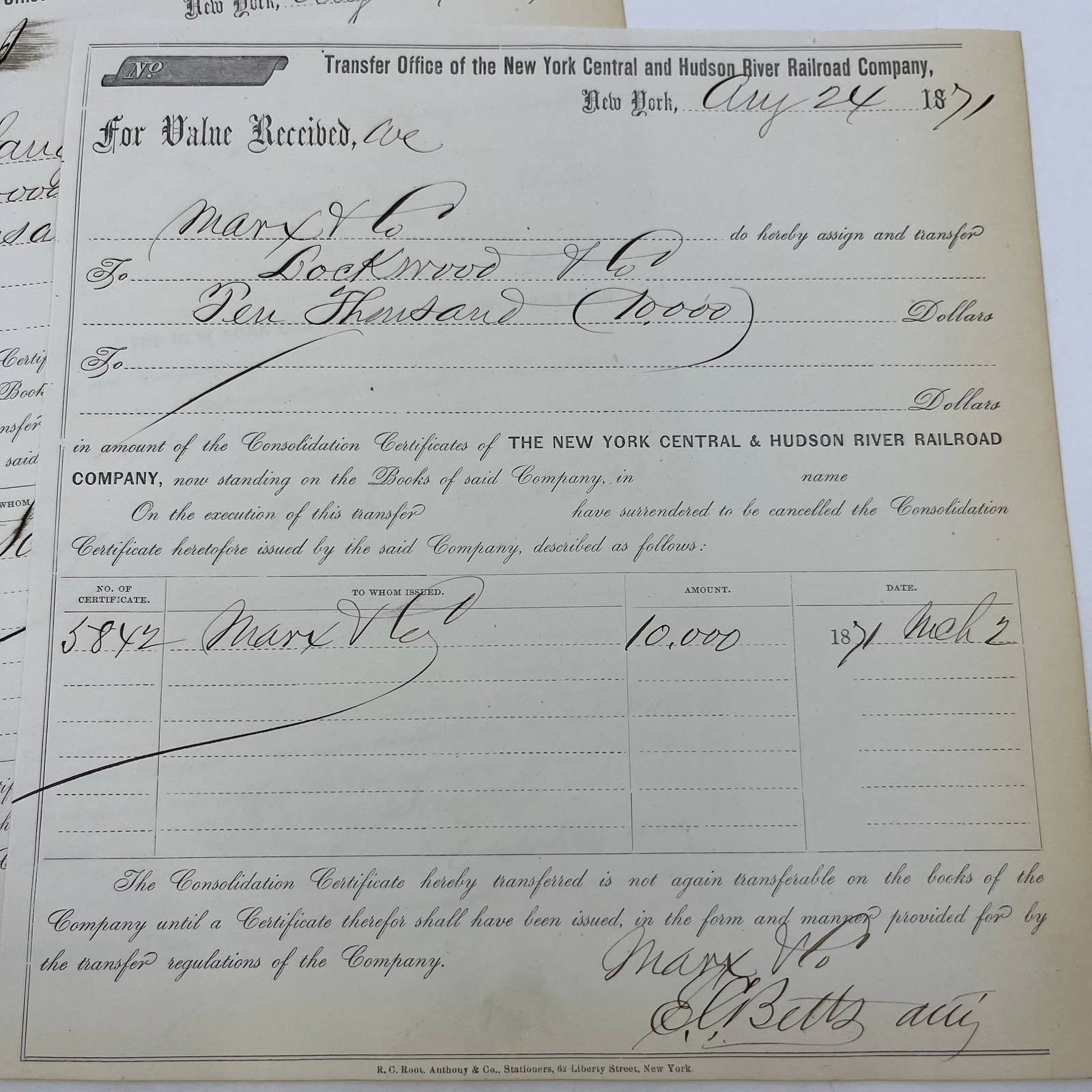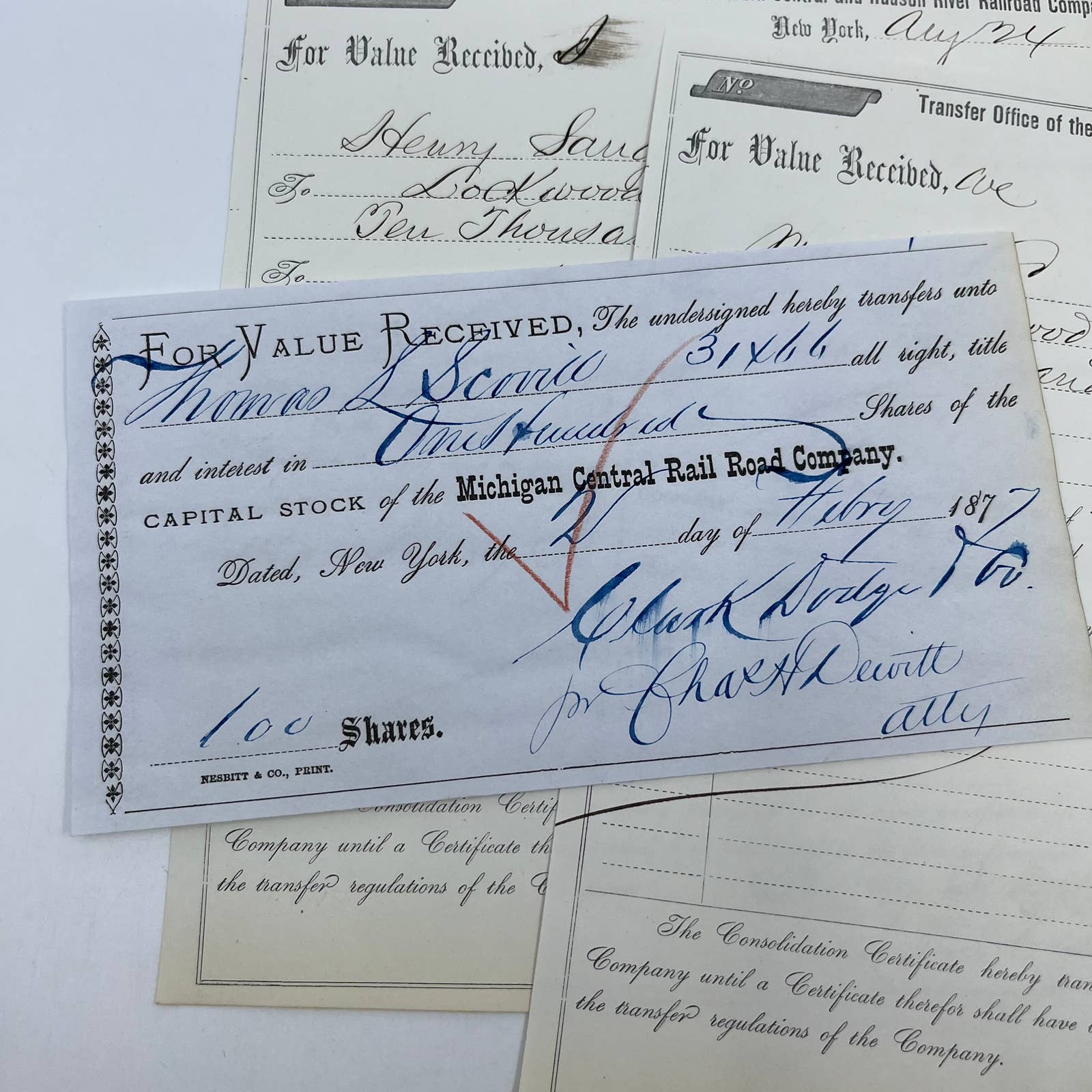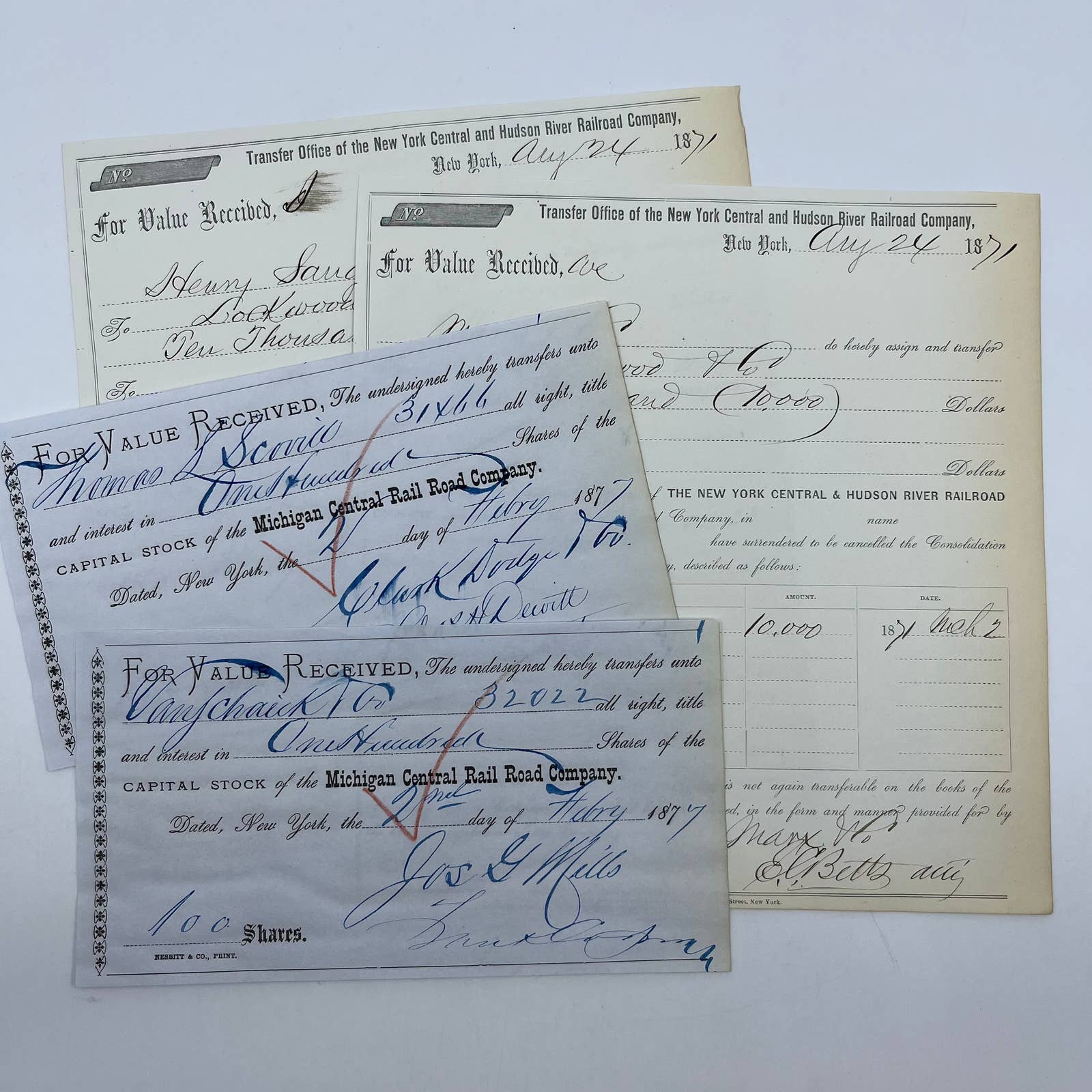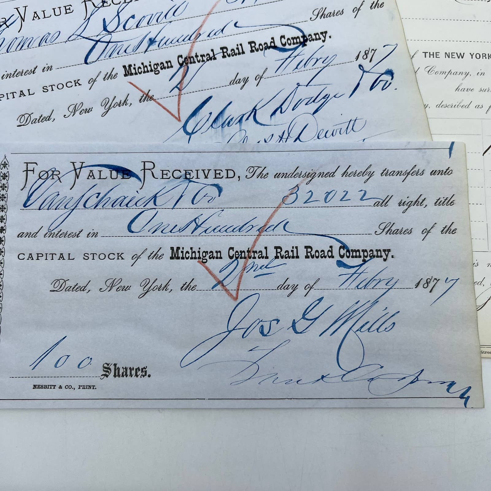1870s Railroad Documents Michigan & Central, New York Central & Hudson Set AC9-1