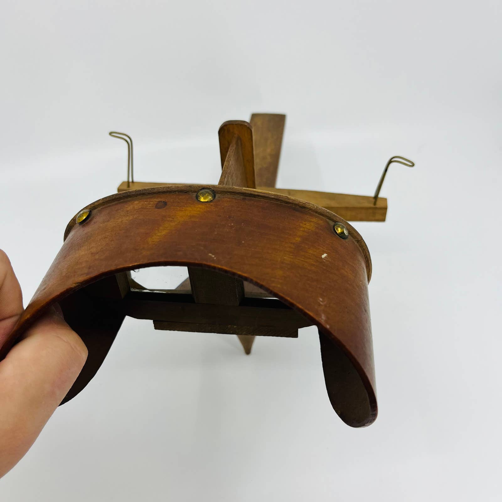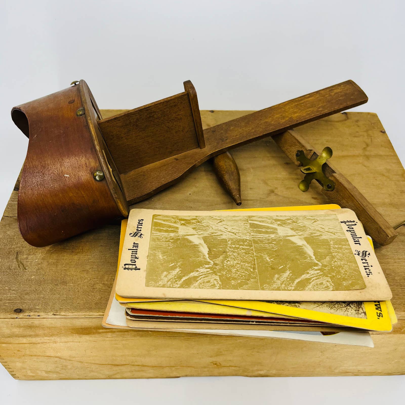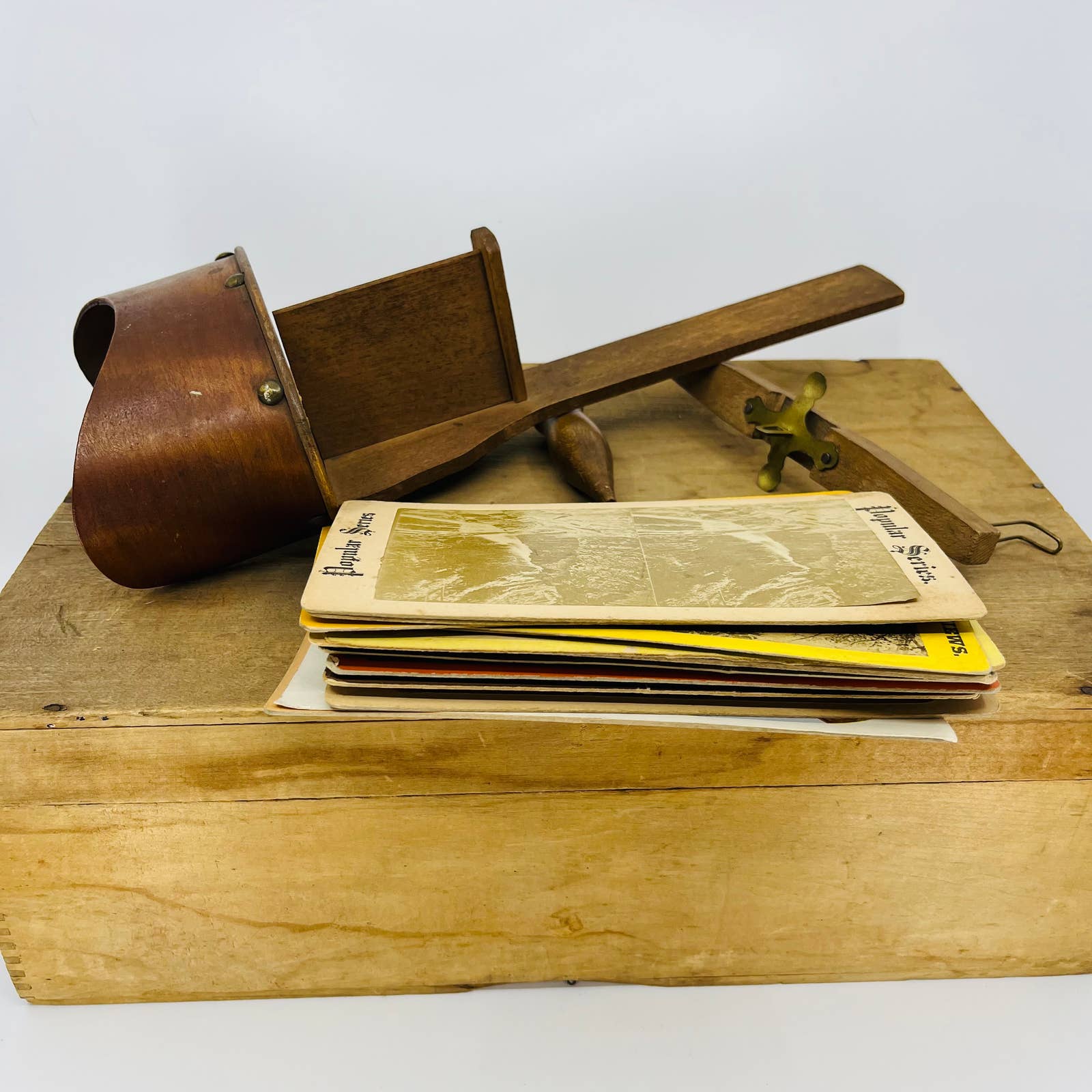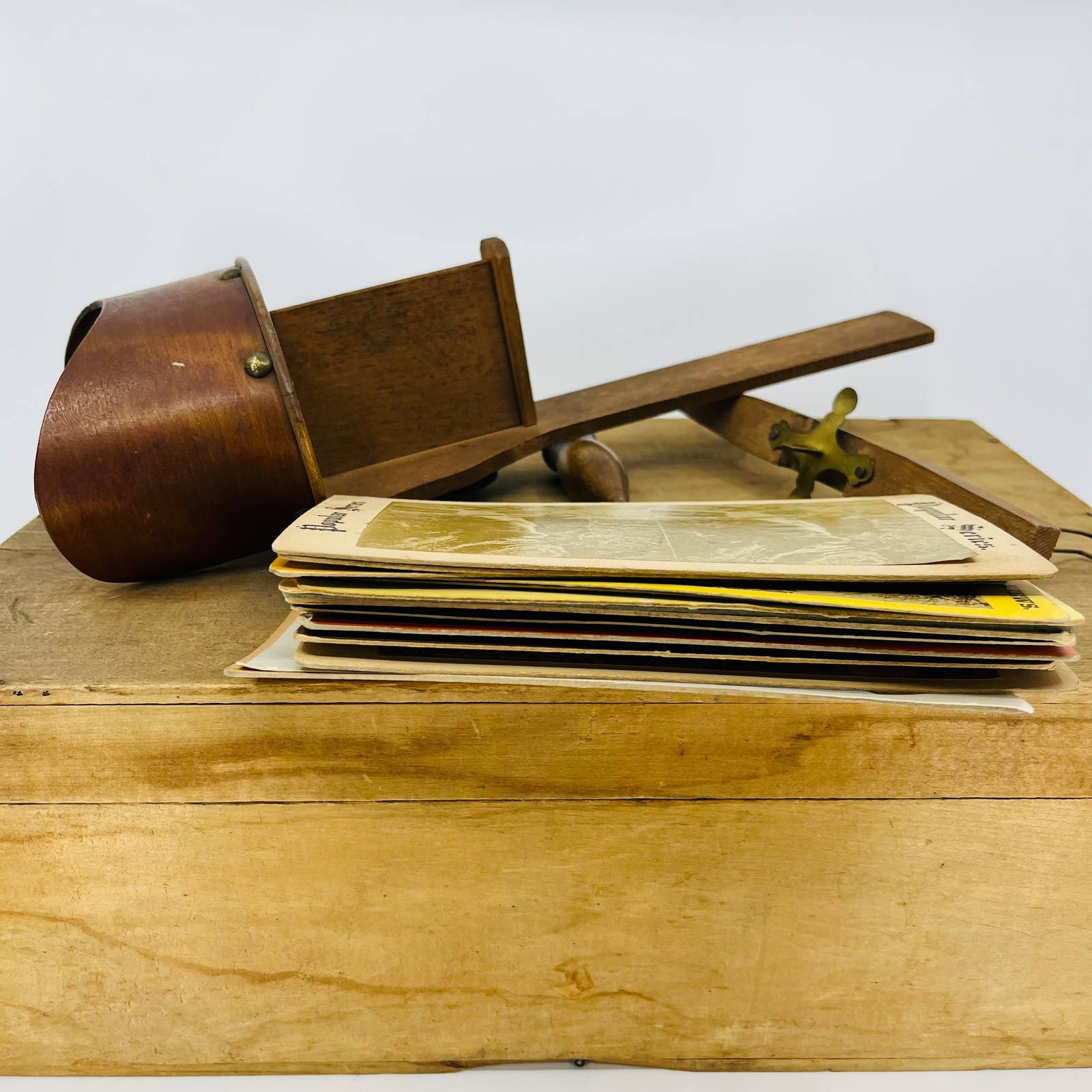 1870s Solid Wood STEREOSCOPE VIEWER Optical 3D Viewer w/ Stack of Cards & Box