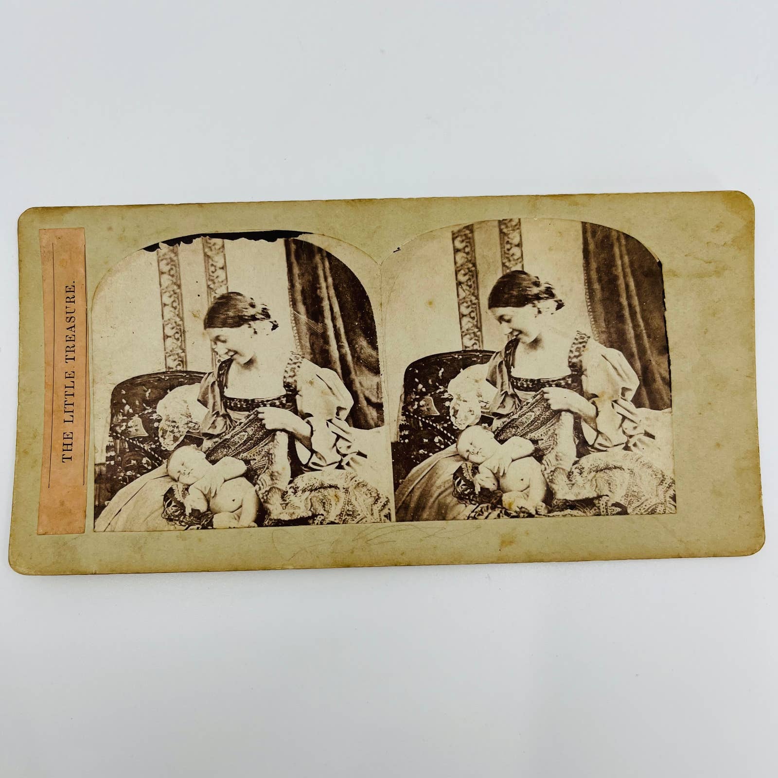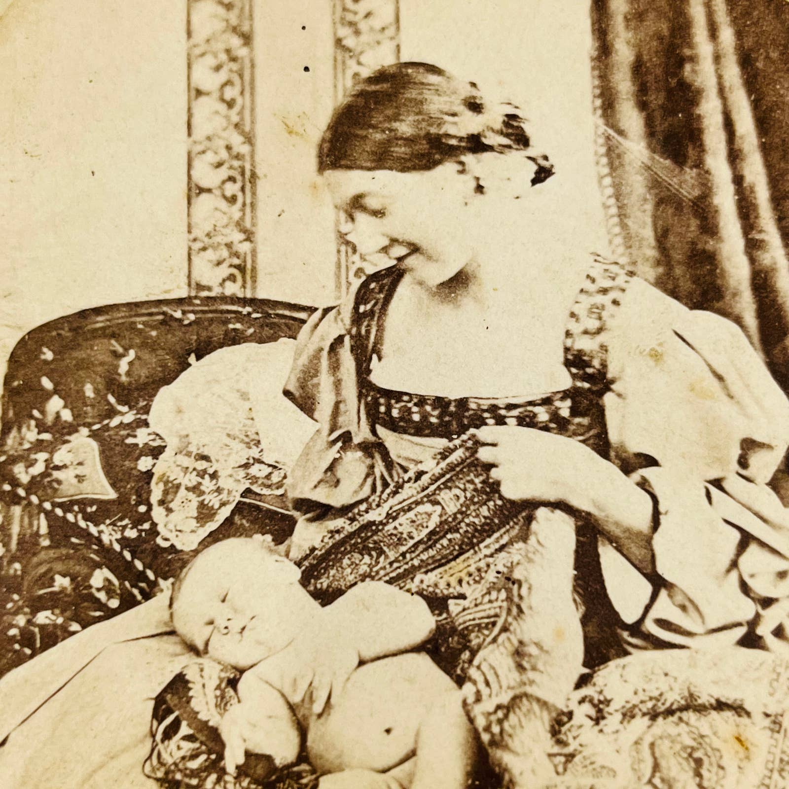 1870s Stereoview Card Victorian Mother Holding Dressing Sleeping Baby Infant