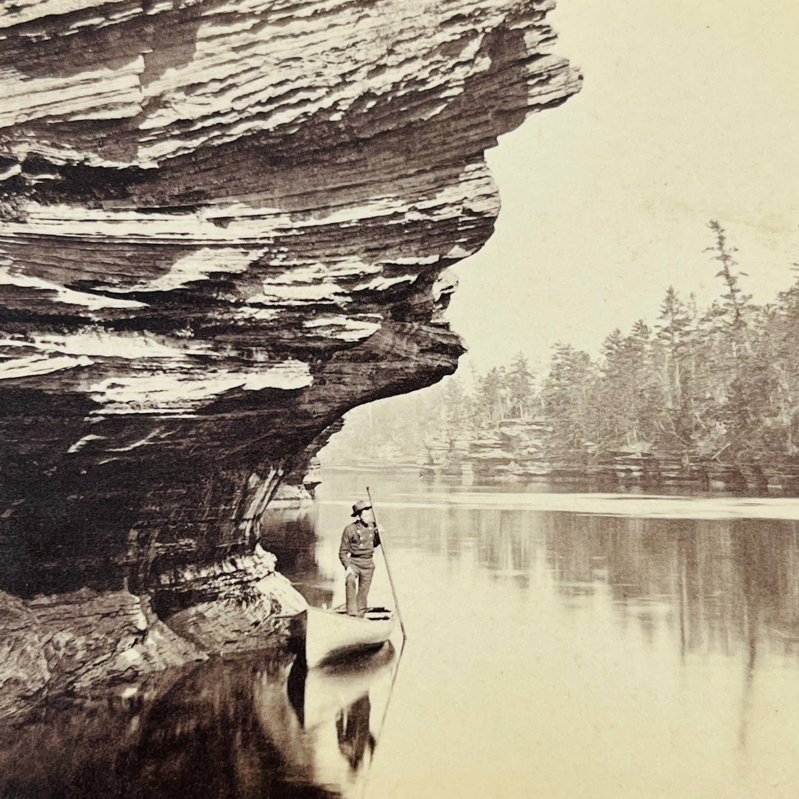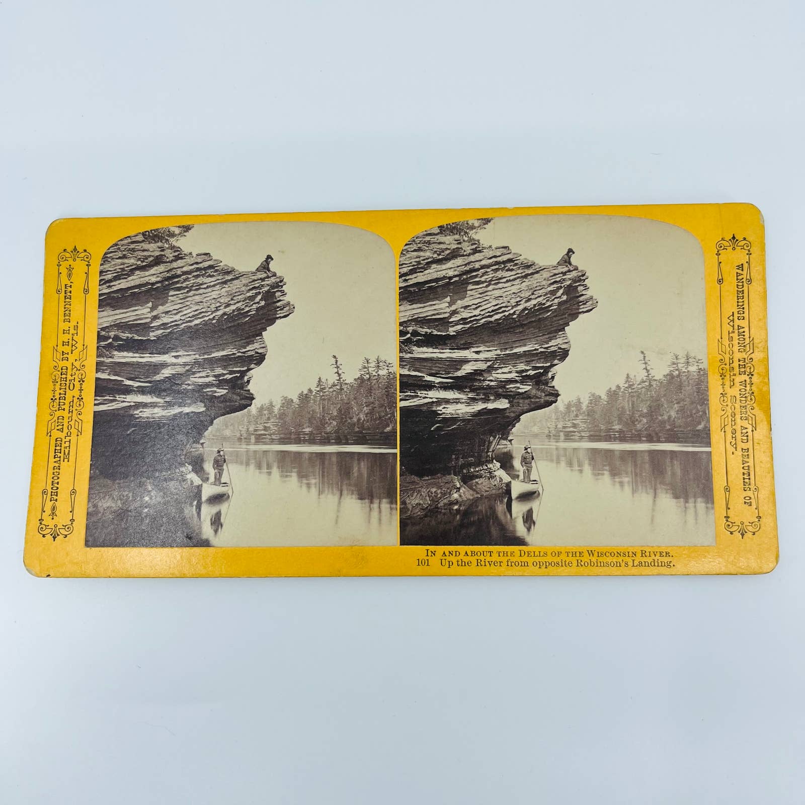 1870s Stereoview Man In Boat Bluff Wisconsin Dells River Robinson’s Landing