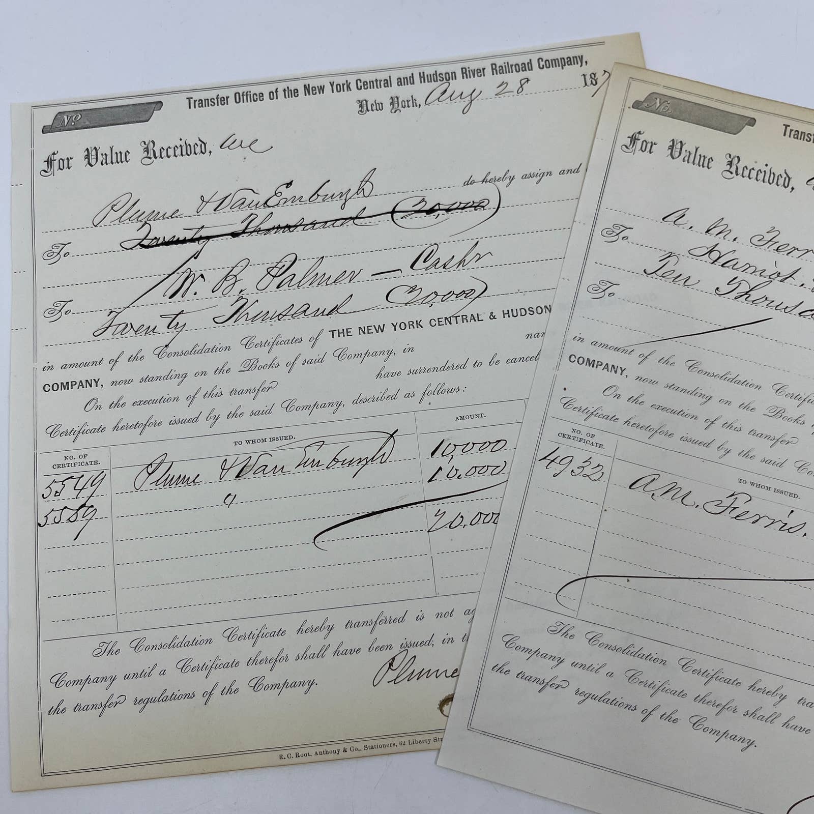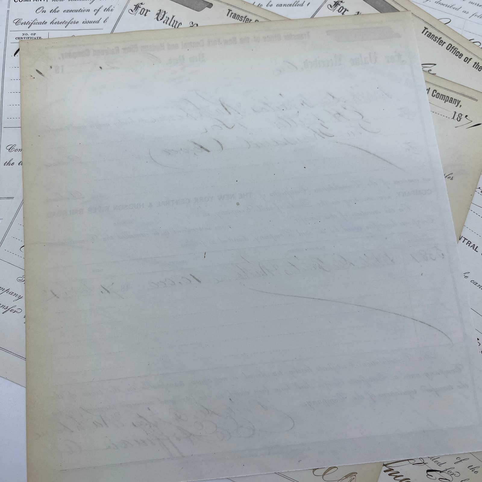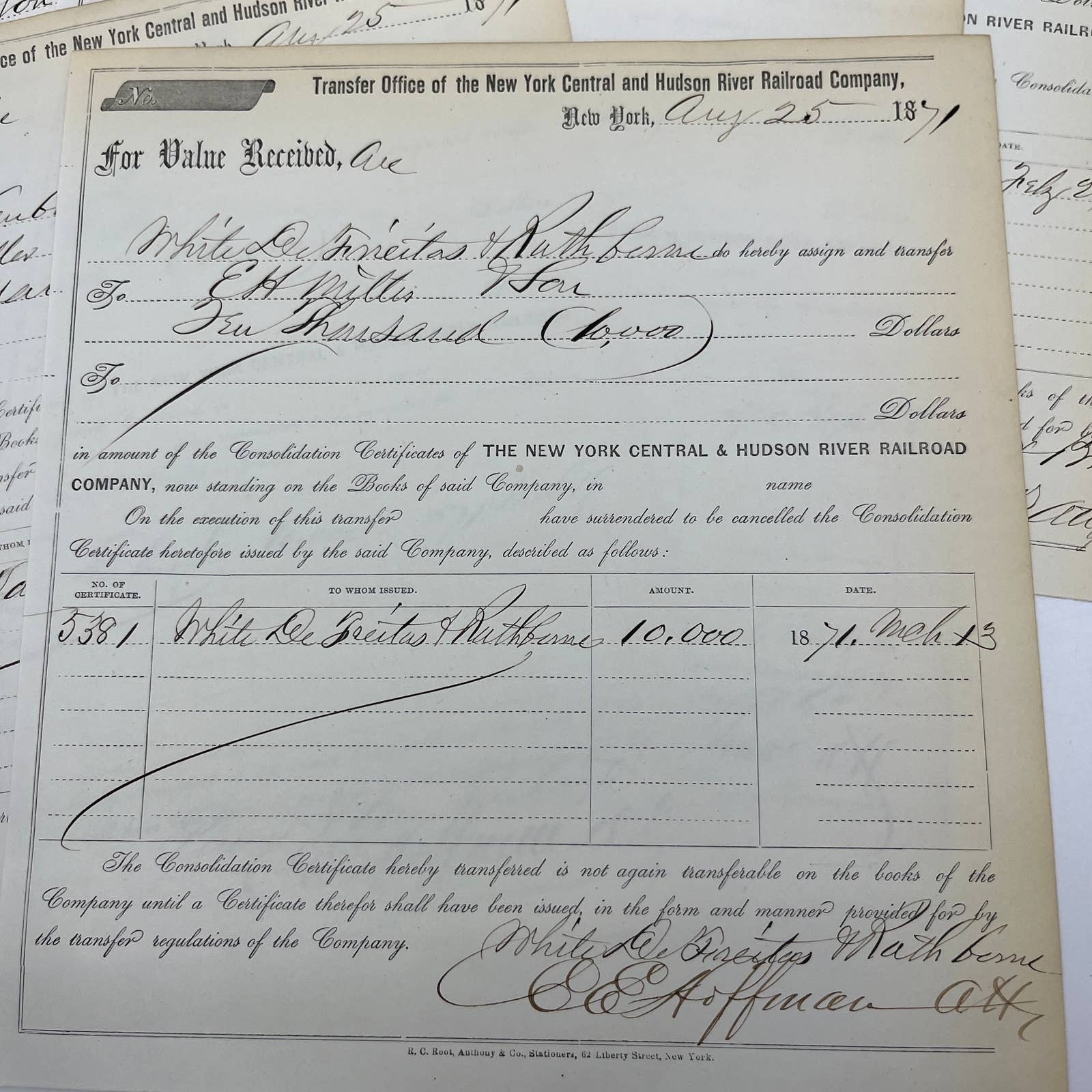 1871 New York Central & Hudson River Railroad Co Transfer Documents Set of 6 AC9