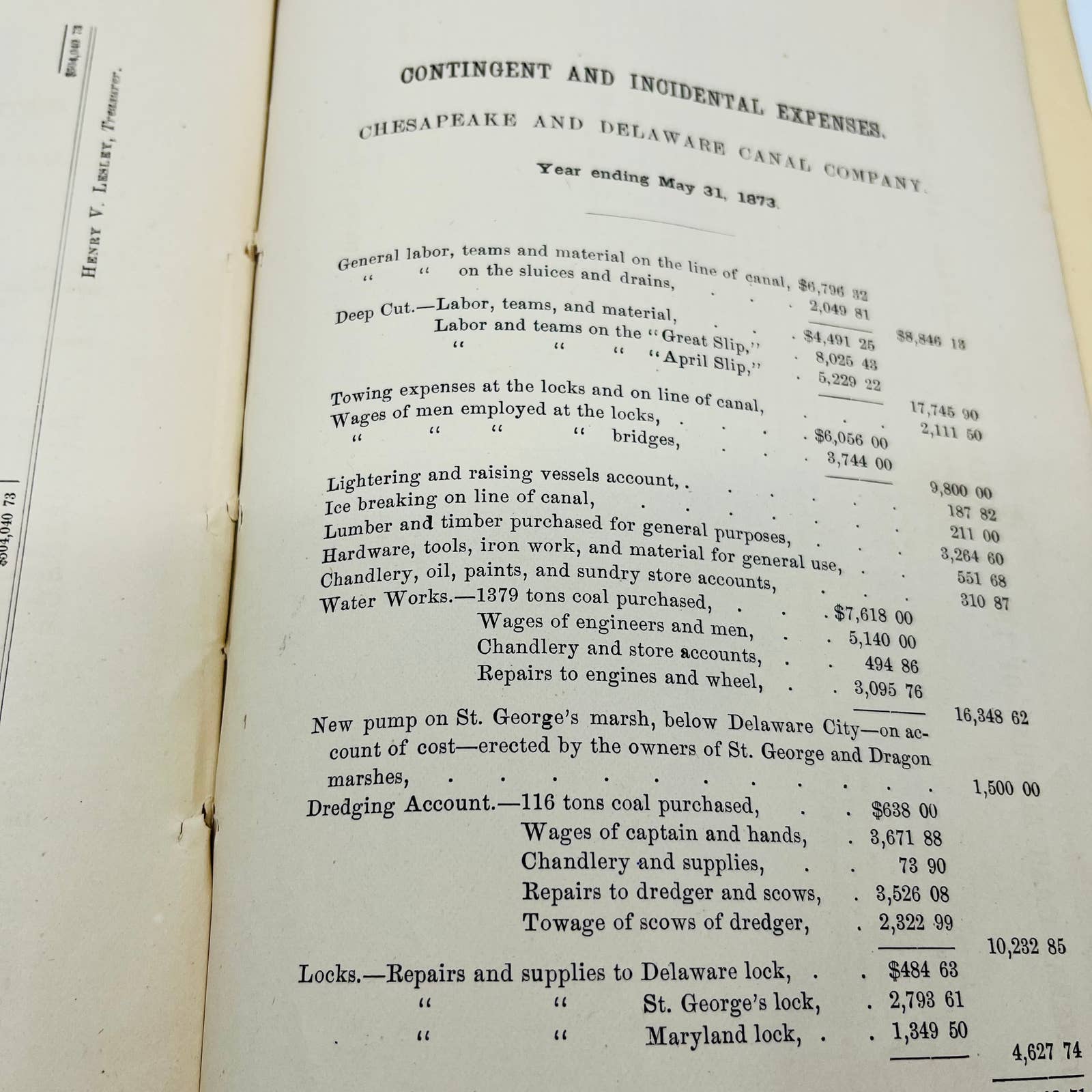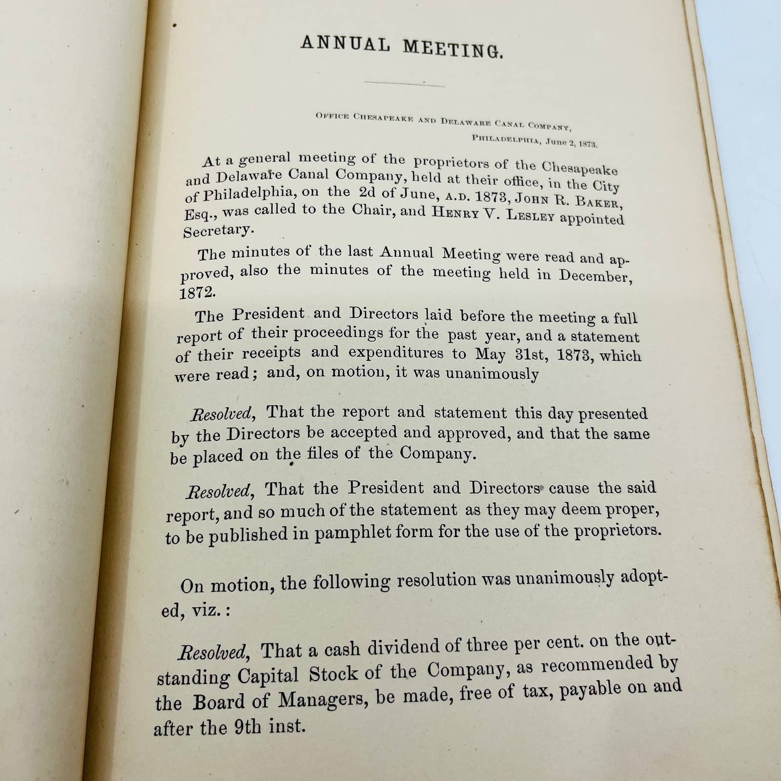 1873 Chesapeake and Delaware Canal Company 54th Annual Report Stockholders AA2