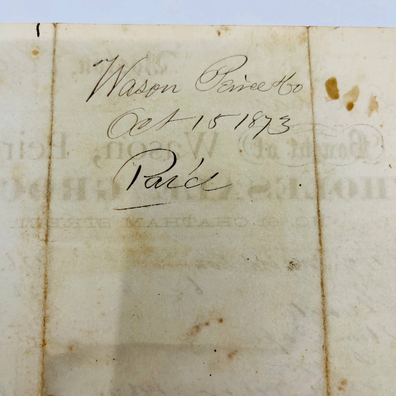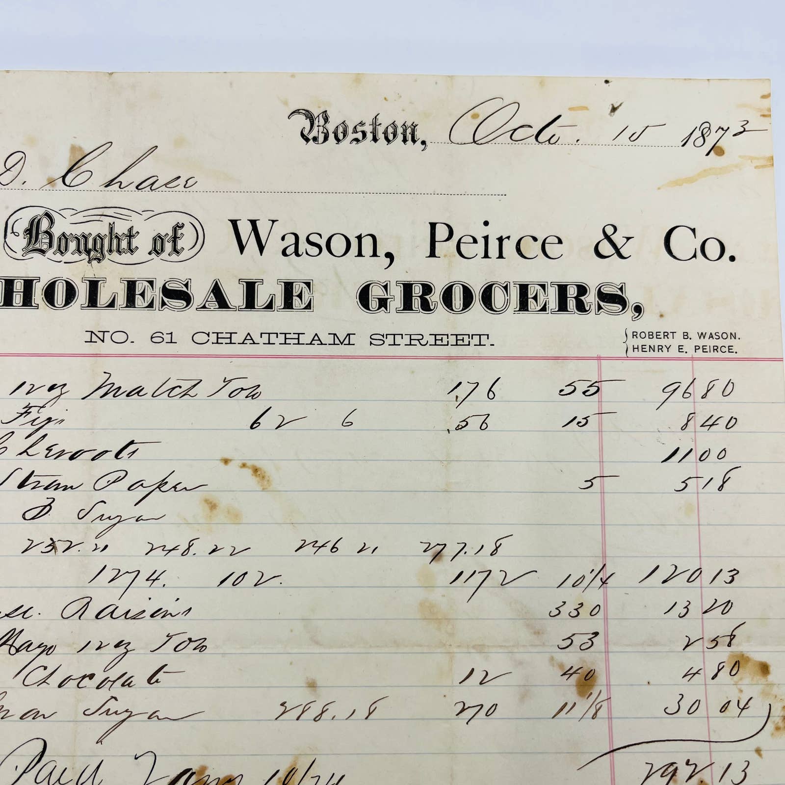 1873 Wason, Peirce & Co. 61 Chatham St Boston MA Billhead Letterhead Receipt AA4