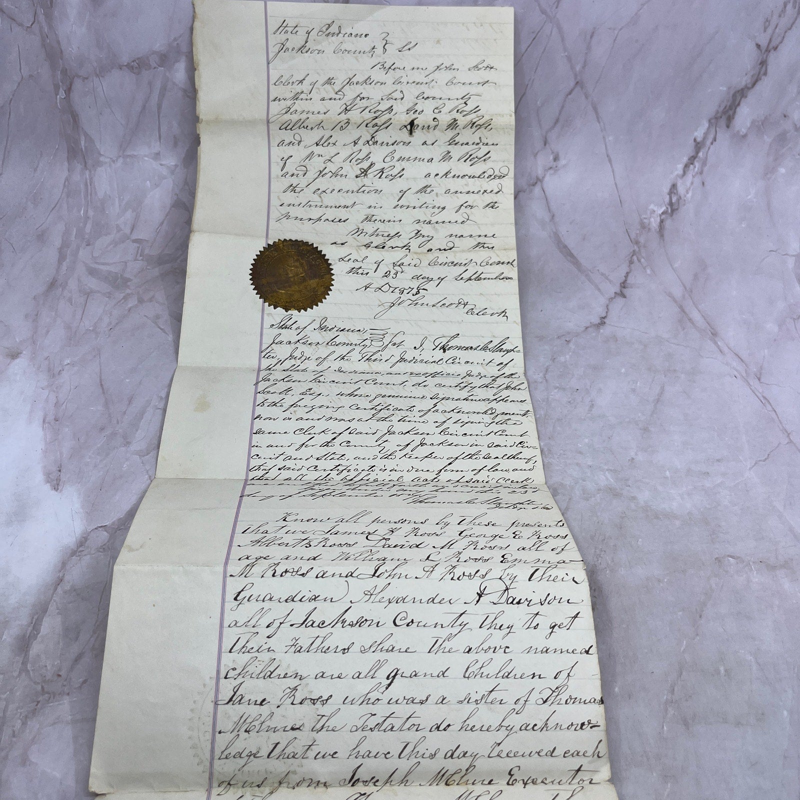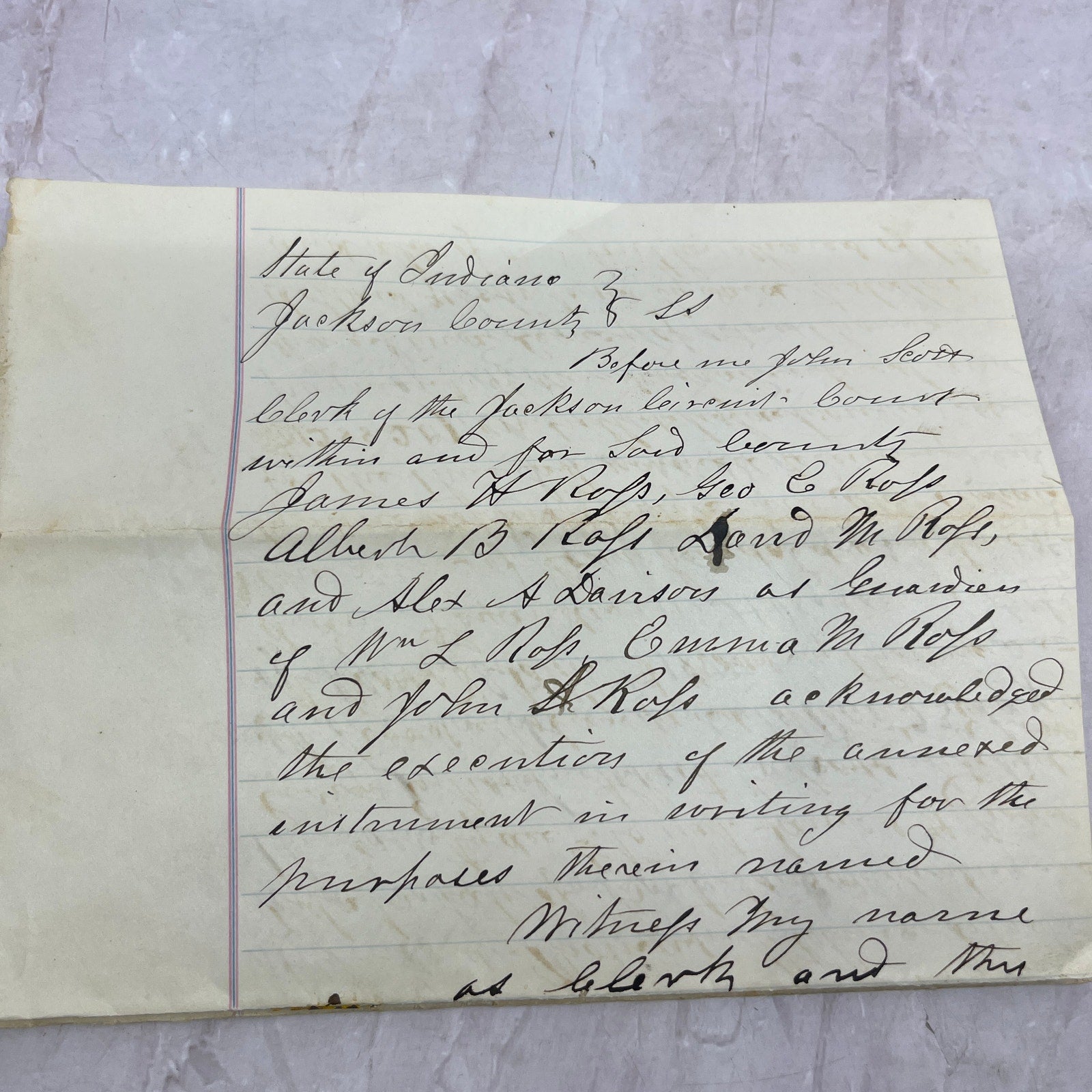 1875 Jackson Indiana Circuit Court Document With Seal Benjamin E. Ross TJ5-E1