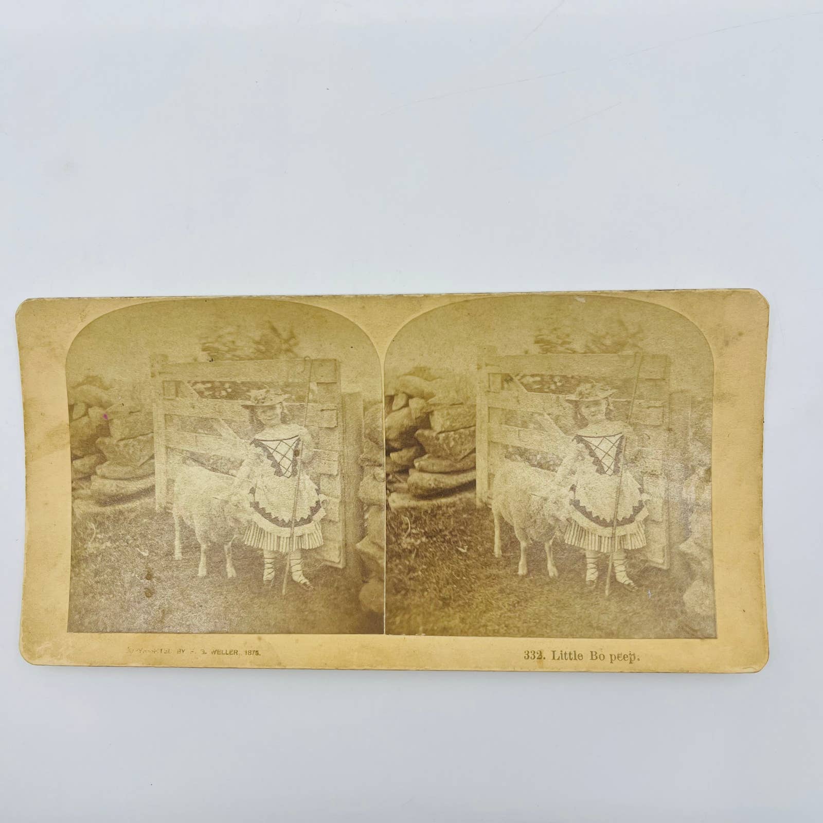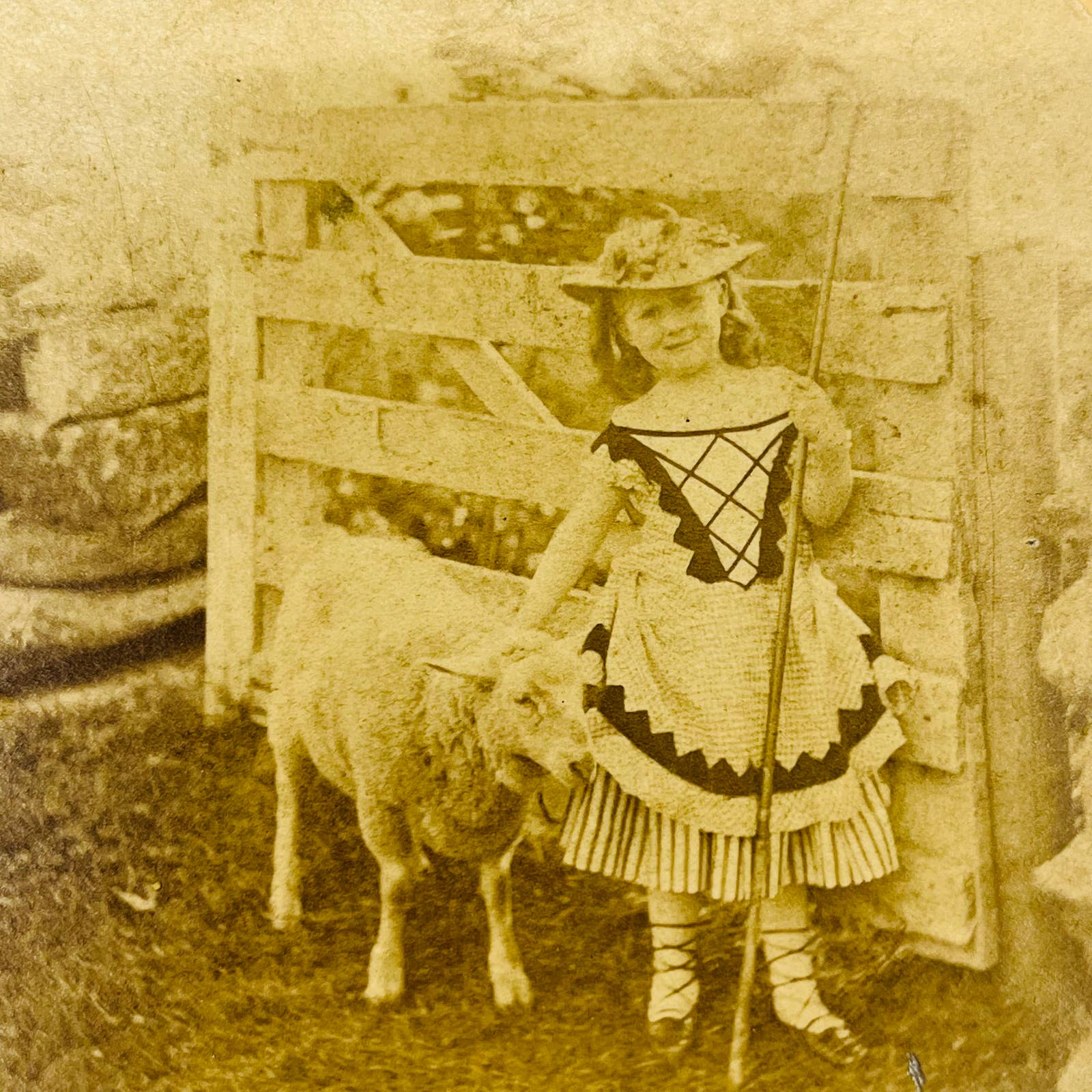 1875 Stereoview Card Victorian Girl Dressed as Little Bo Peep With Sheep SB8