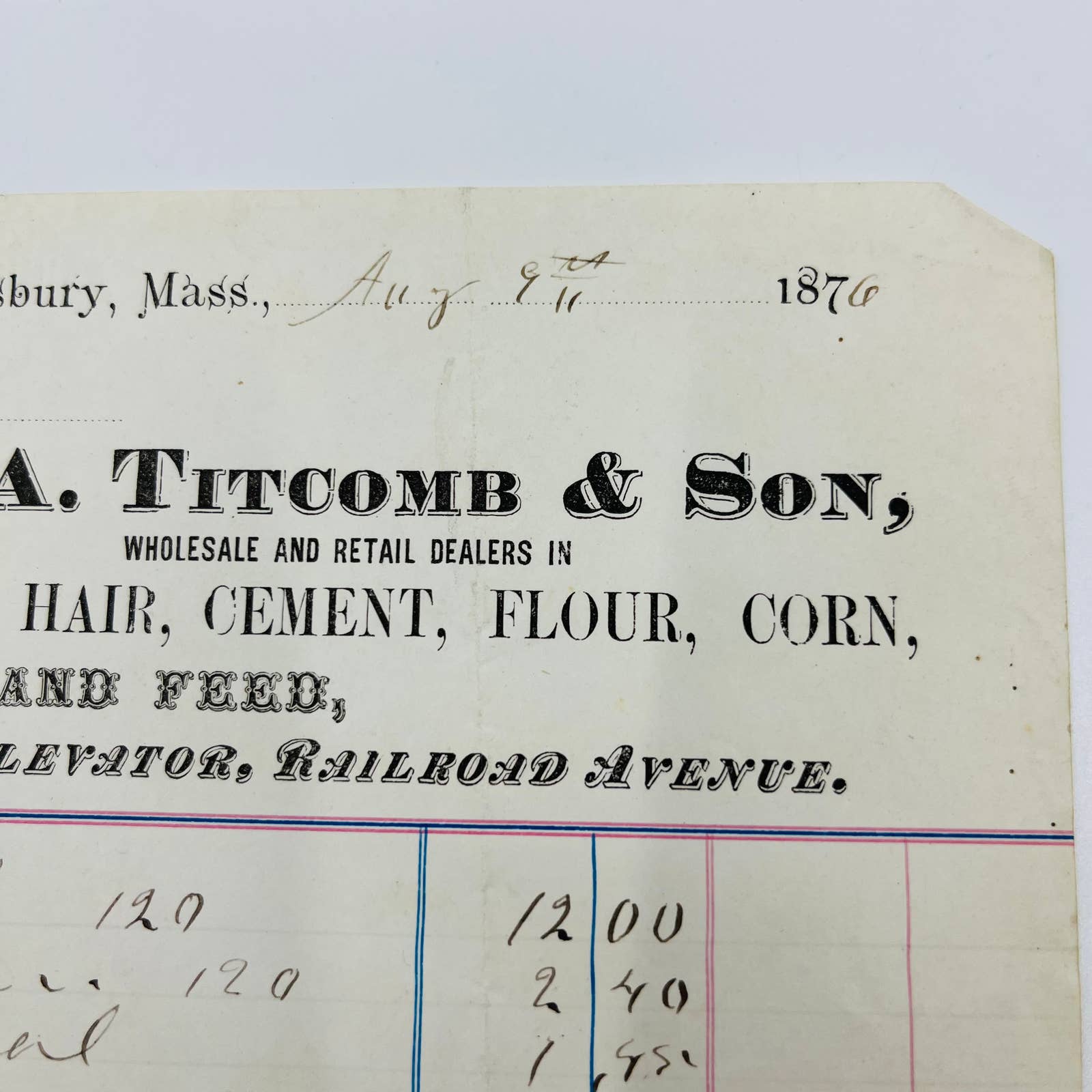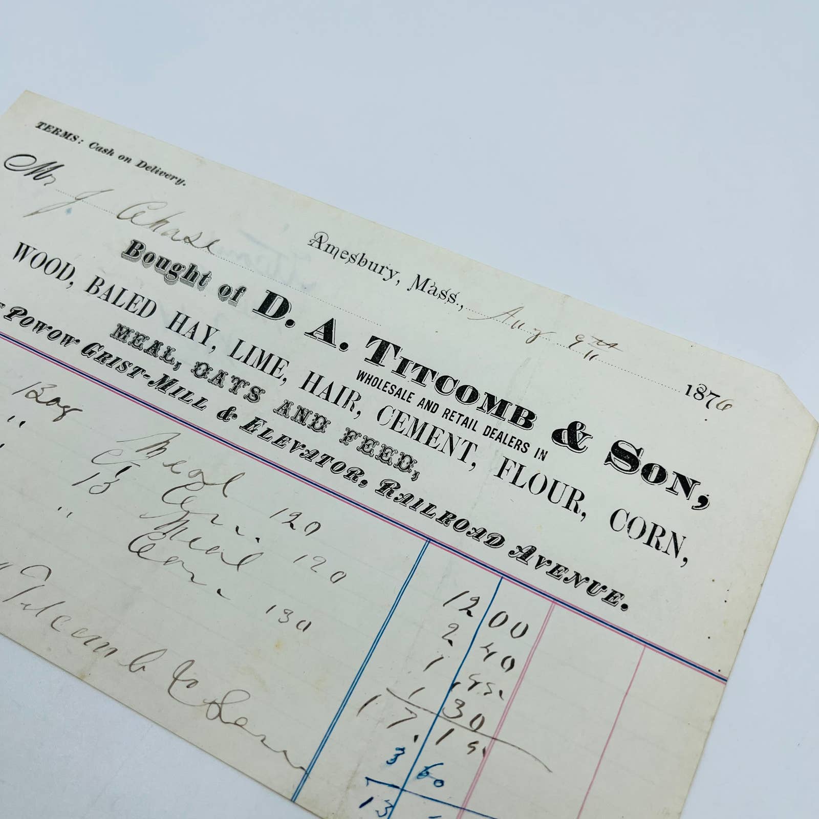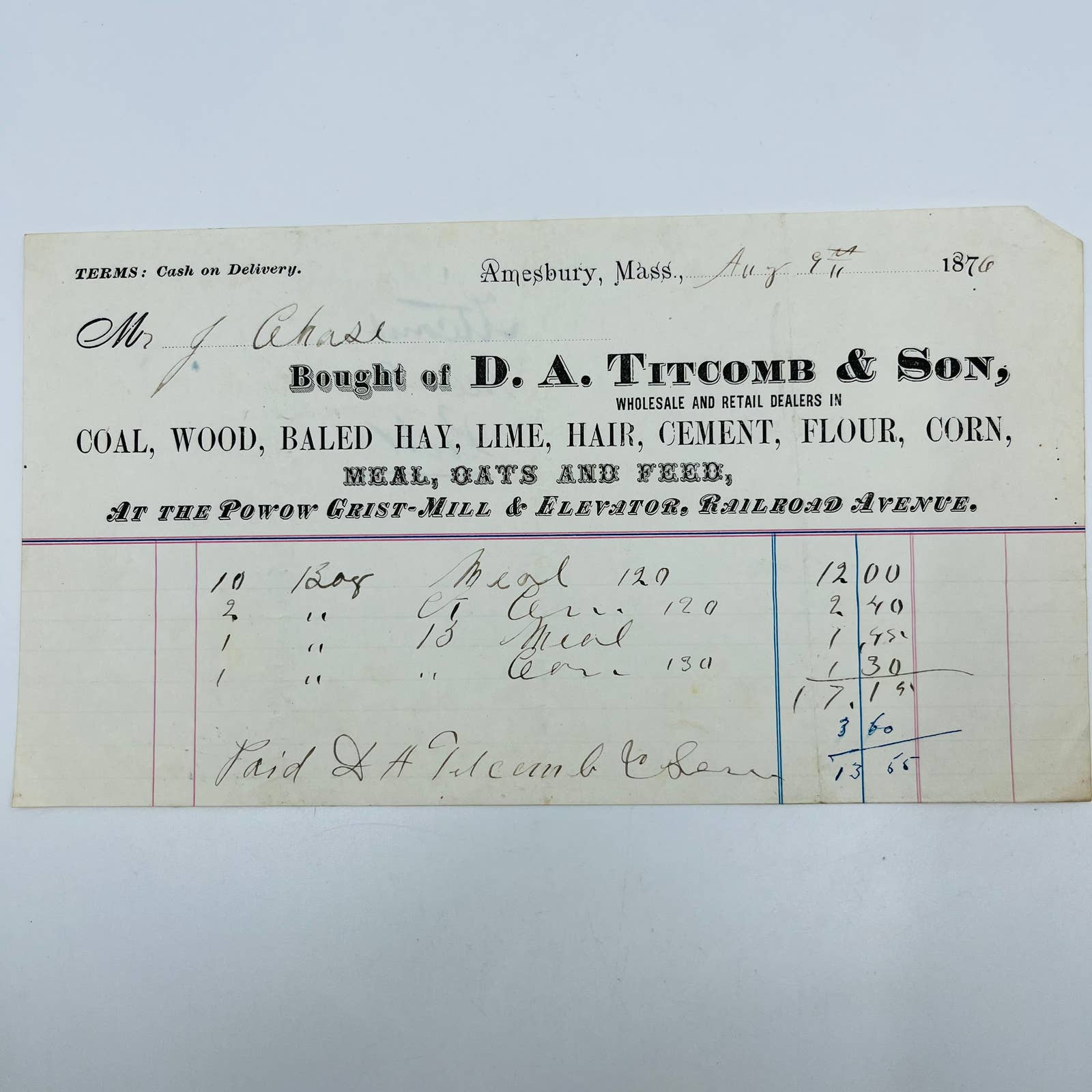 1876 DA Titcomb & Son Amesbury Mass Billhead Letterhead Receipt Railroad Ave AA4