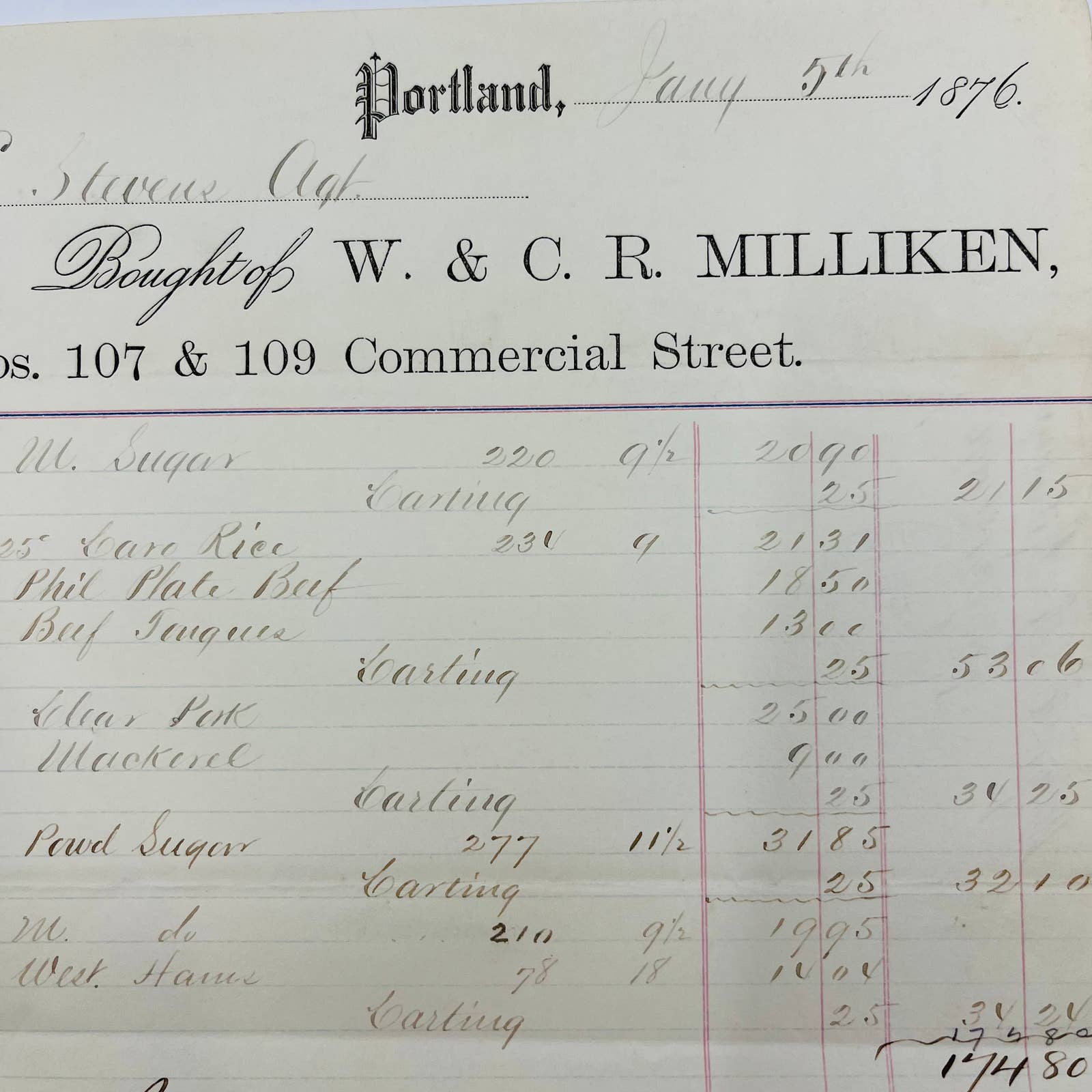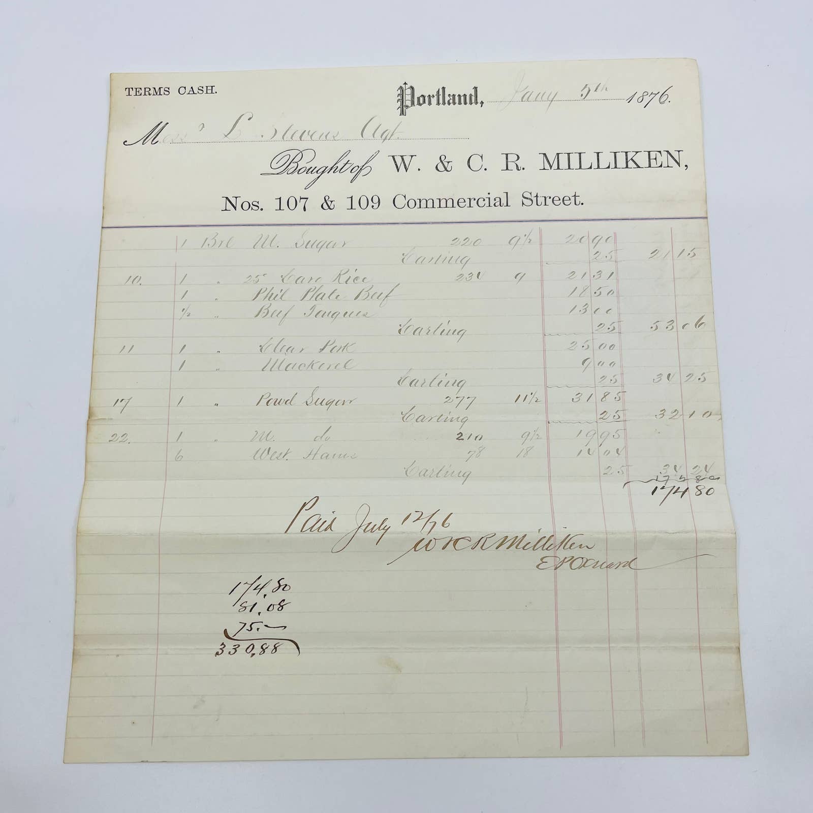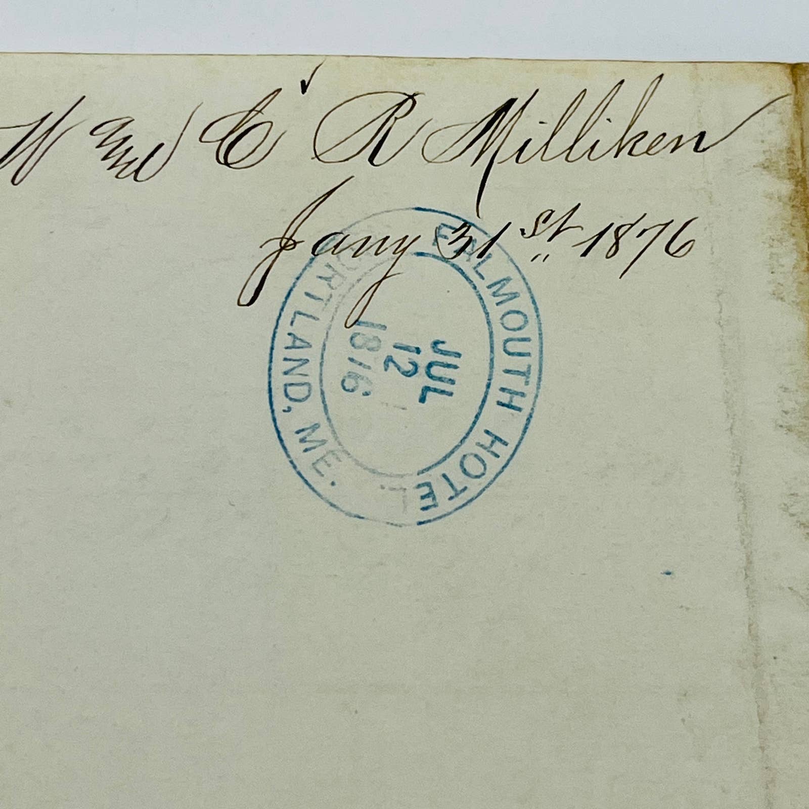 1876 W & CR Milliken Portland ME Falmouth Hotel Stamp Billhead Letterhead AA4