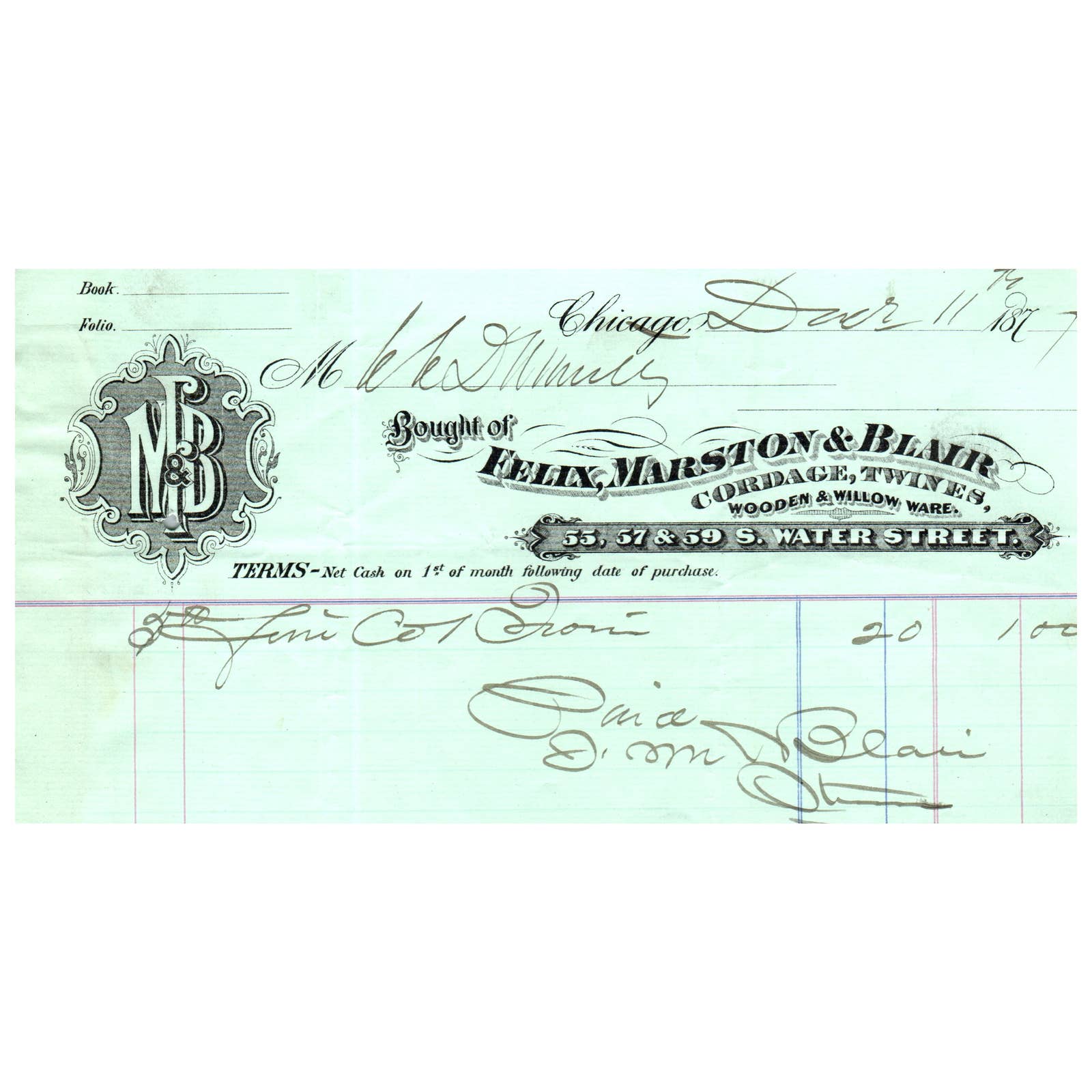 1877 Felix, Marston & Blair Cordage Twines Letterhead S Water Street Chicago AC9