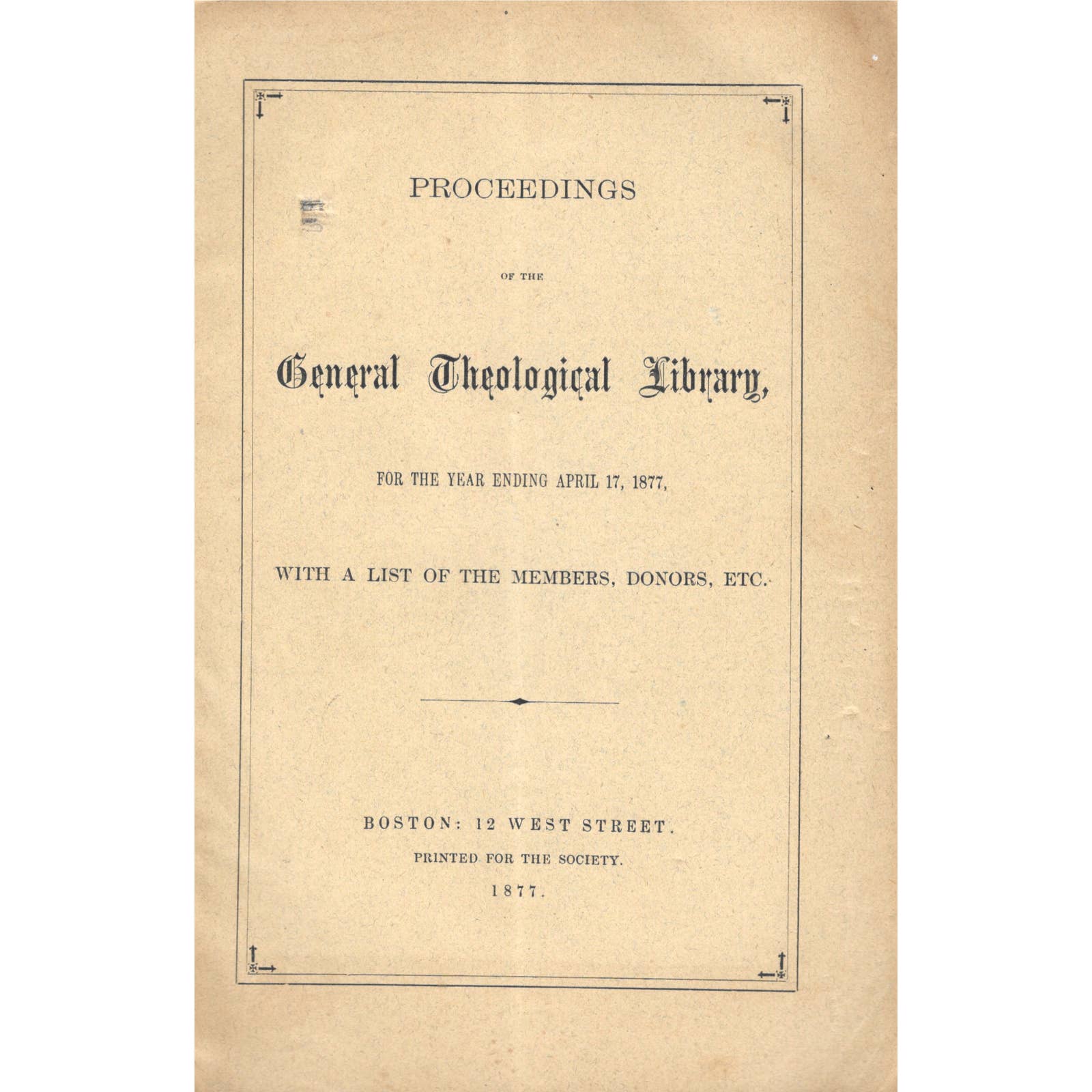 1877 Proceedings of the General Theological Library List Of The Members, Etc Boston MA TJ7