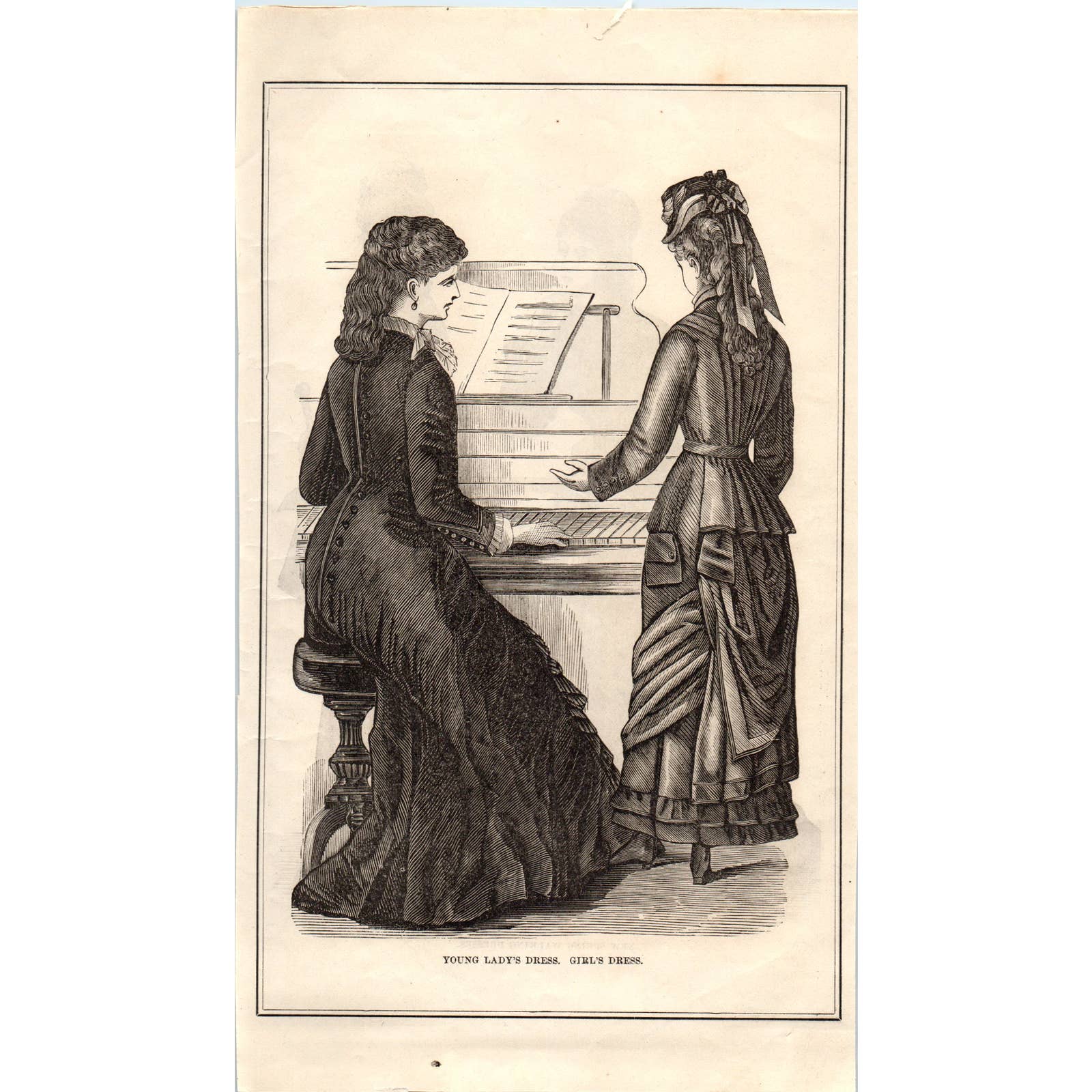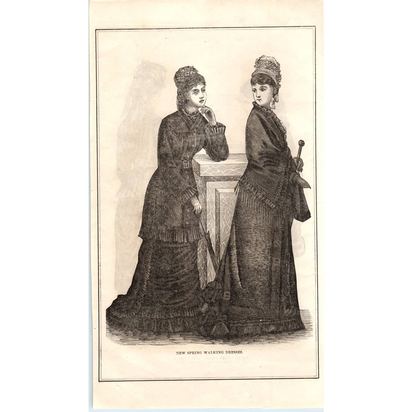1878 2 Sided Victorian Fashion Engraving Girl's Dress Spring Walking Dress SF2