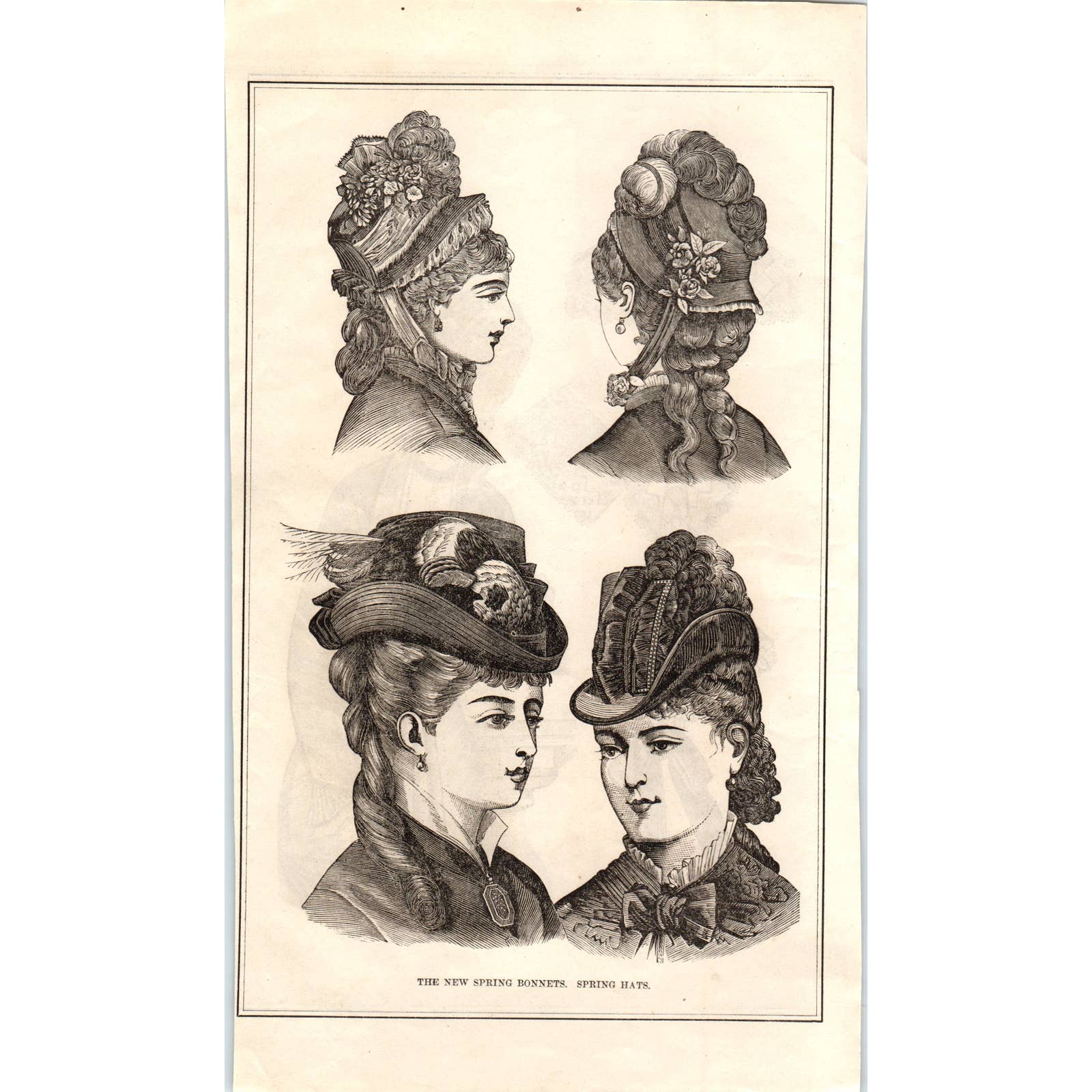 1878 2 Sided Victorian Fashion House Dress Collars & Cuff Spring Bonnets SF2