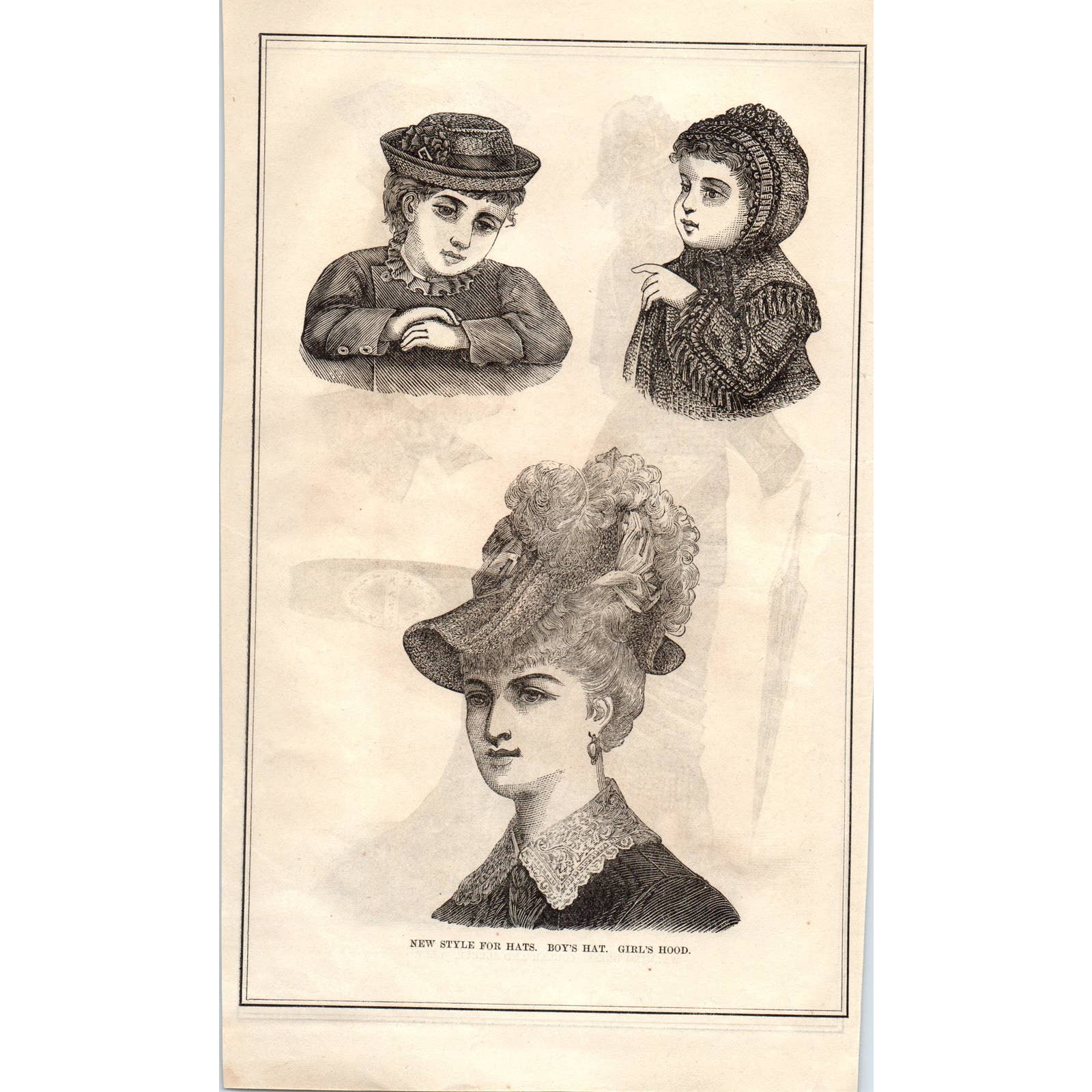 1878 2 Sided Victorian Fashion New Style Boy's Hat Girl's Hood Walking Dress SF2