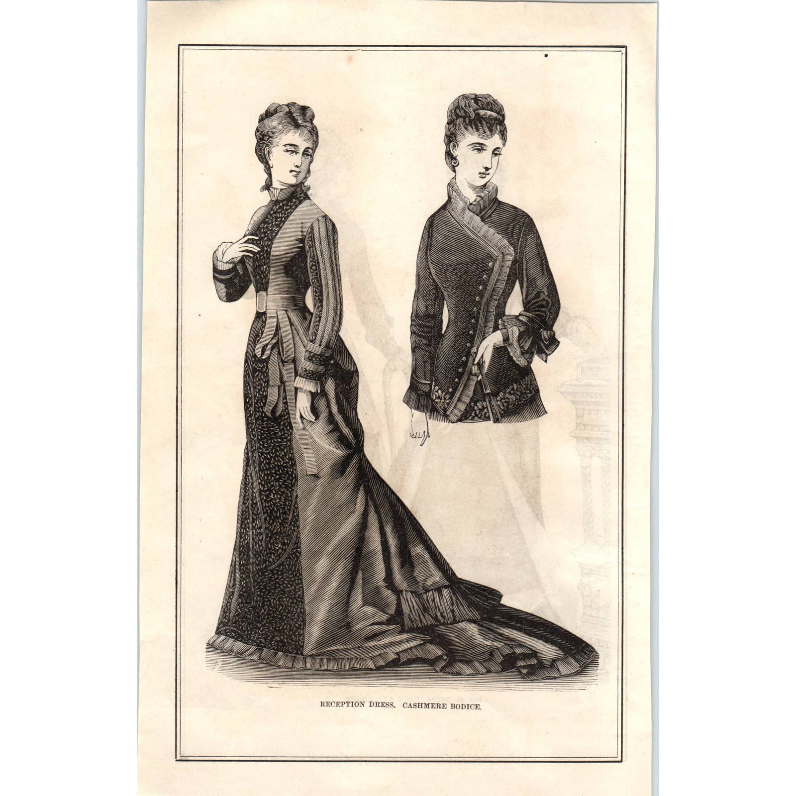 Original piece taken from 1878 Peterson's Magazine. Measures roughly 6x9. See pics for condition.