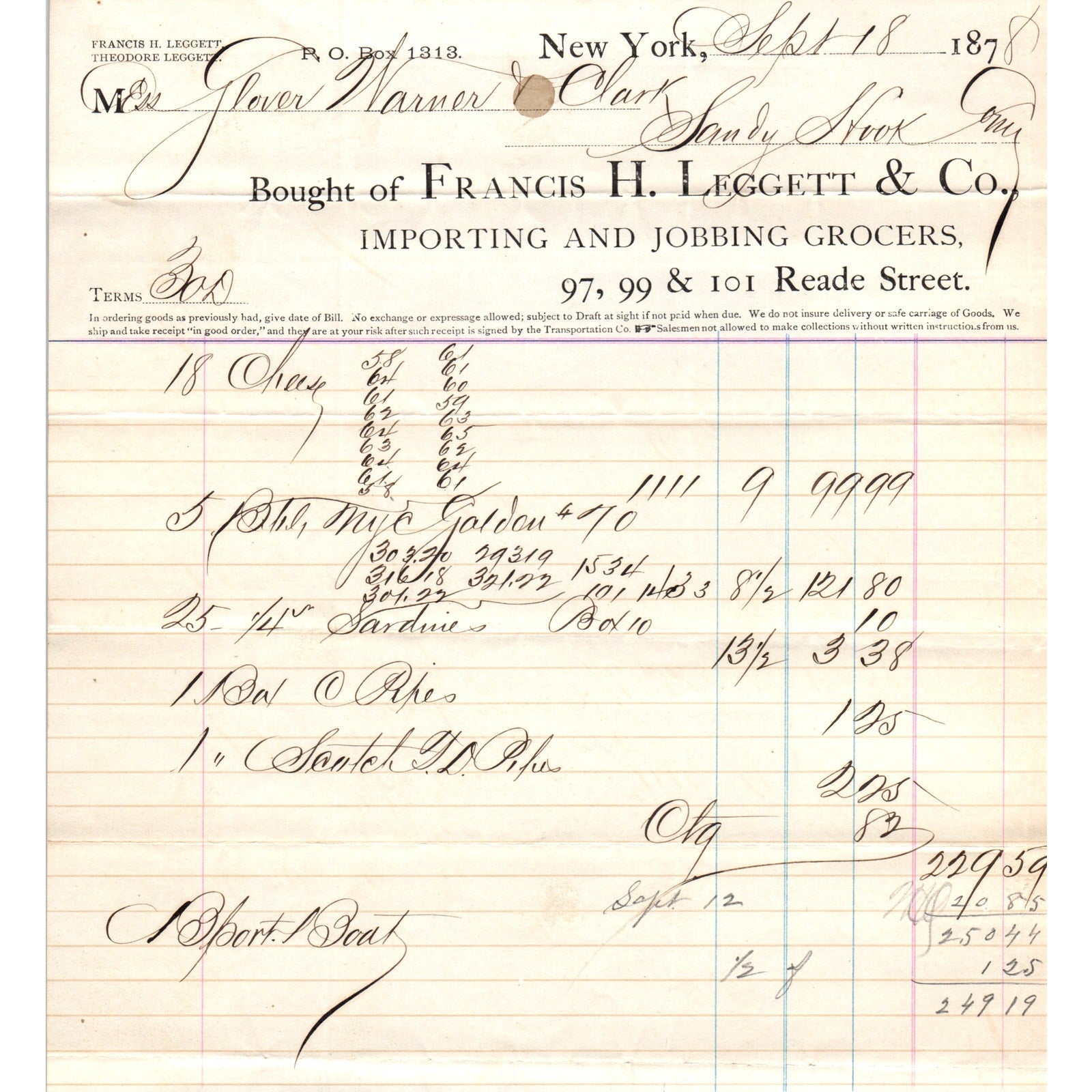 1878 Francis H. Leggett & Co Grocers New York Receipt Letterhead D24