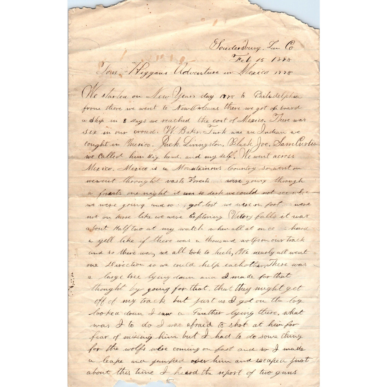 1878 Handwritten Letter Tom Higgins Adventure in Mexico - Soudersburg PA D20