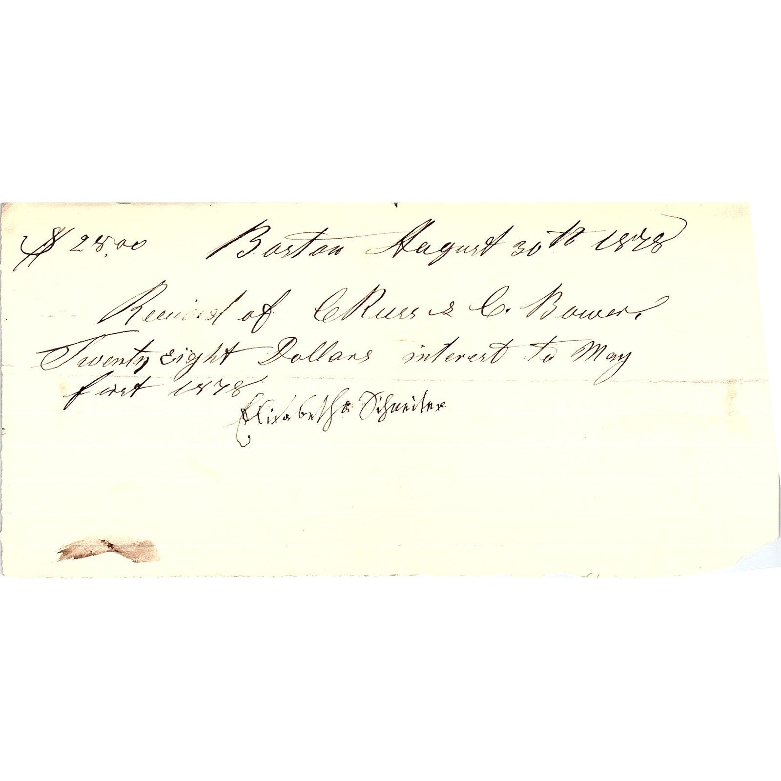 1878 Handwritten Receipt C. Russ & C. Bower Boston MA AF4-1