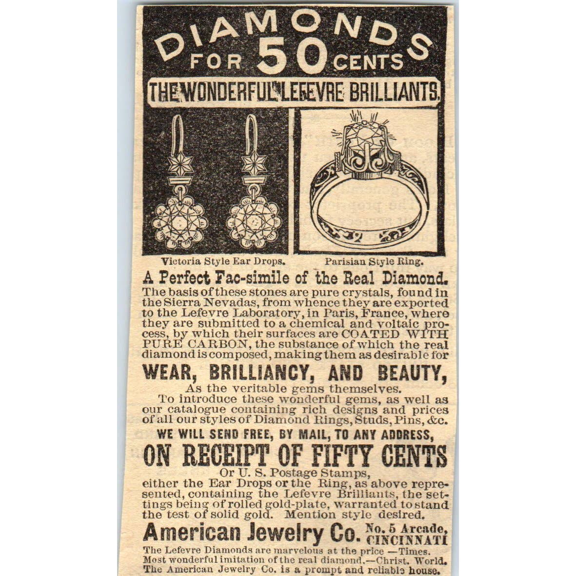 1878 Magazine Ad - Lefevre Diamonds American Jewelry Co Cincinnati OH SF2