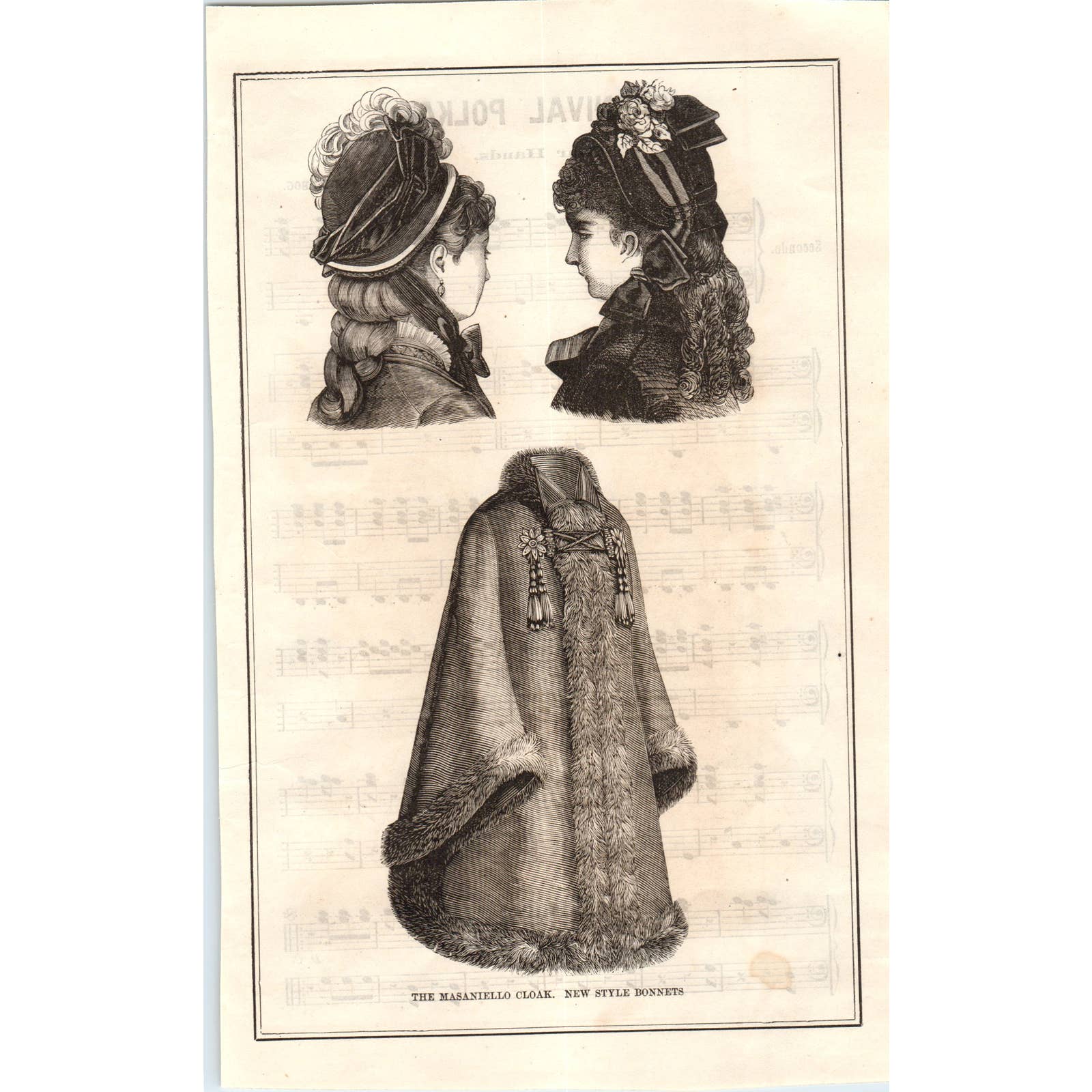 1878 Peterson's Magazine Clip - Women's Fashion The Masaniello Cloak New Style Bonnets SF2